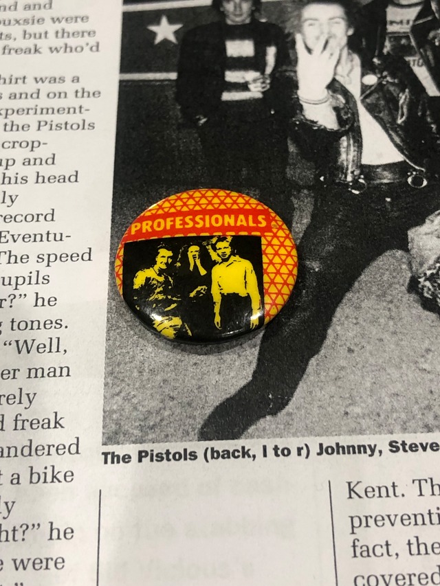 Vintage THE PROFESSIONALS Pinback button(ザ・プロフェッショナルズ 缶バッジ) 推定1980年代 from UK セックスピストルズ解散後、スティーブジョーンズとポールクックを中心に結成されたバンドです。缶バッジがあるとは知りませんでした。見たことが無いので、お好きな方は是非! <サイズ> 直径:2.4㎝ <コンディション> USED