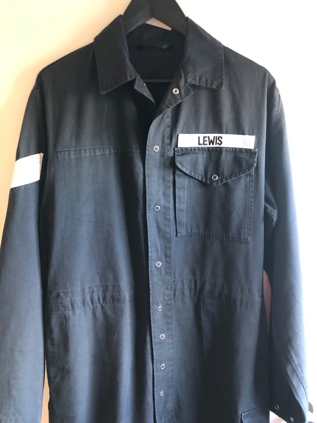 VINTAGE BRITISH ARMY COVERALLS(ヴィンテージ オールインワン) 年代不明 COTTON/POLYESTER イギリス軍のブラックカバーオールです。ミリタリーのカバーオールでブラックというのが非常に珍しいです。胸元のLEWISのパッチがなんとも良いですね。ワンポケで野暮ったさも無く、カッコいいです。缶バッジなどでパンク使用にカスタムというのも雰囲気があって良いですね。おススメです。 <サイズ> 総丈:164㎝(背面襟元~裾) 肩幅:48㎝ 身幅:55㎝ 袖丈:65㎝ 股下:80㎝ 裾幅:24㎝ 若干の誤差はご了承ください。 <コンディション> USED ヒップ部に一部汚れあり(写真参照)
