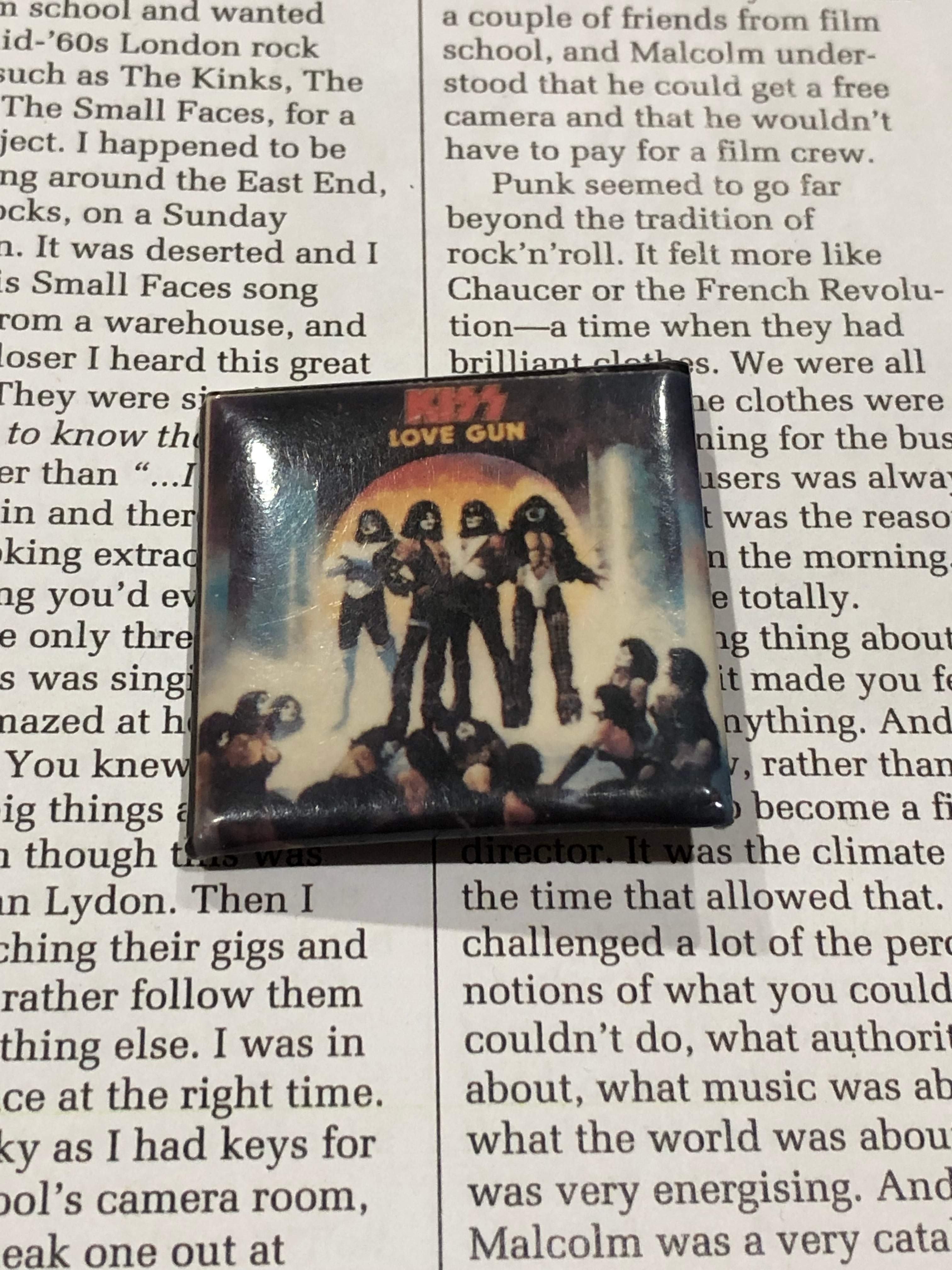 キッスのヴィンテージスクウェアタイプのバッジです。1977年のアルバム・ラヴガンのジャケット写真ですね。是非!
