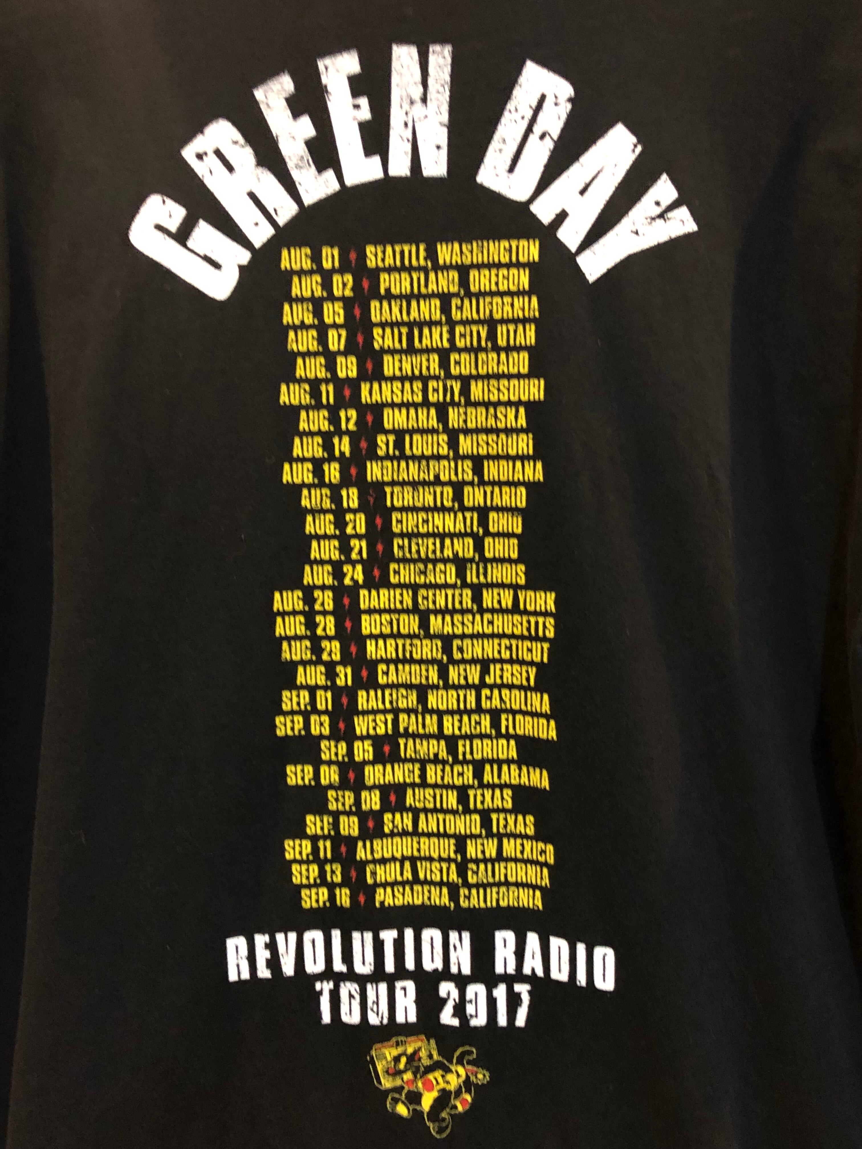 グリーンデイ Revolution Radio Tour 2017のTシャツです。両面プリント、ビッグサイズは貴重です。フロントのプリント、気分が上がります。これからの時期にピッタリです。是非。