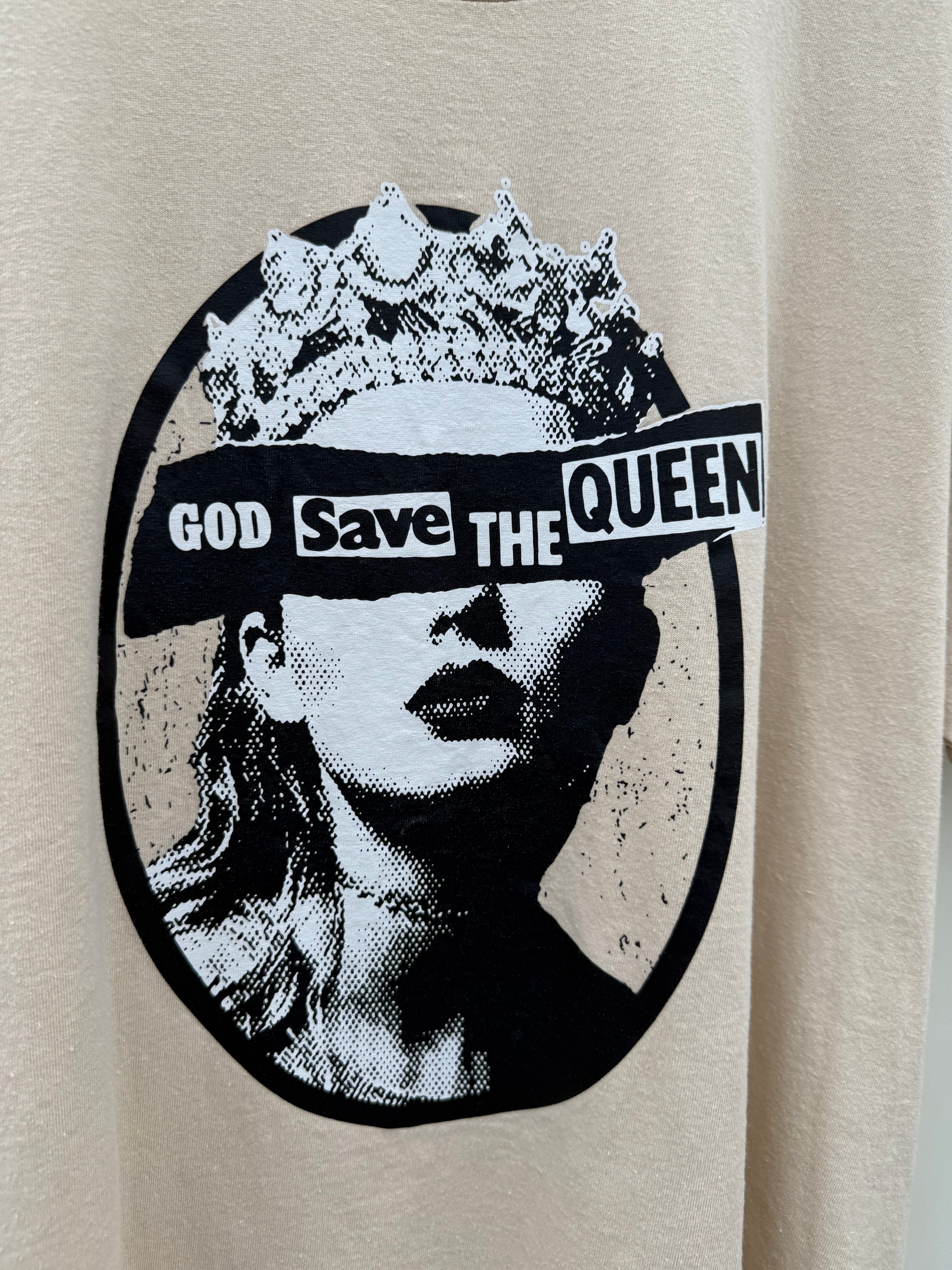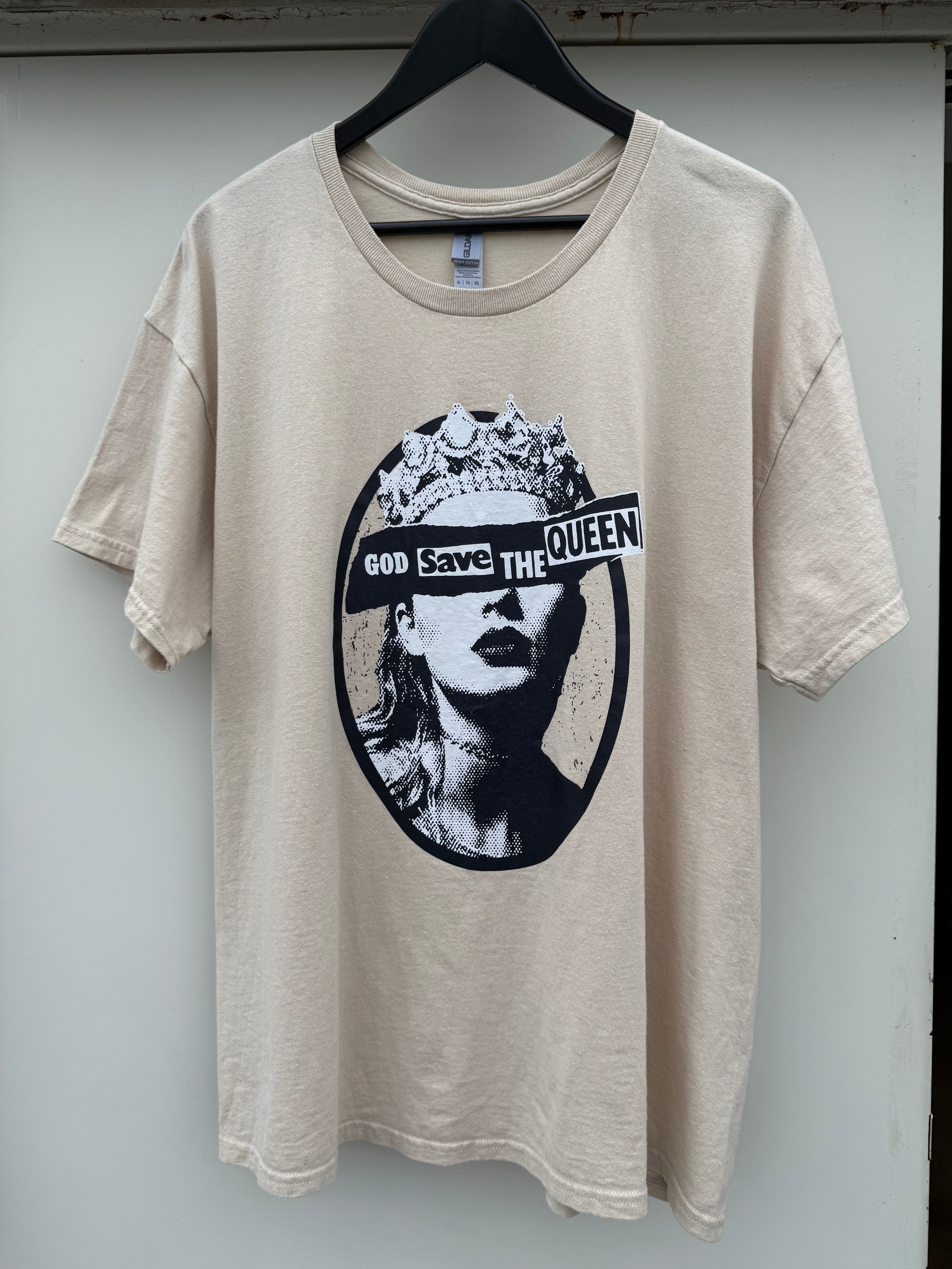 テイラースウィフトのGOD SAVE THE QUEENバージョンTシャツです。なかなかインパクトのありますね。God saveバージョンも雰囲気が変わってカッコいいですね。見たことのないパターン、シンプルイズベストな一枚です。珍しいので是非!
