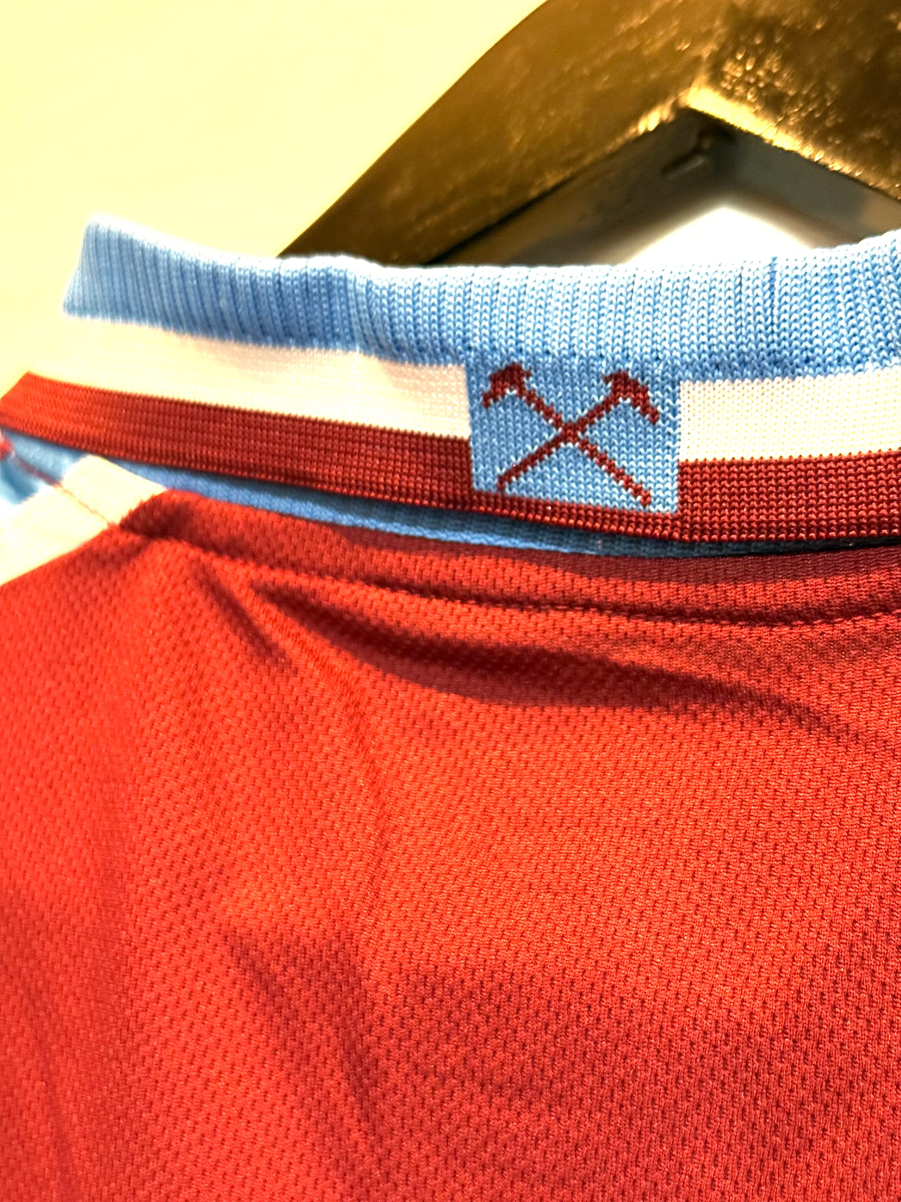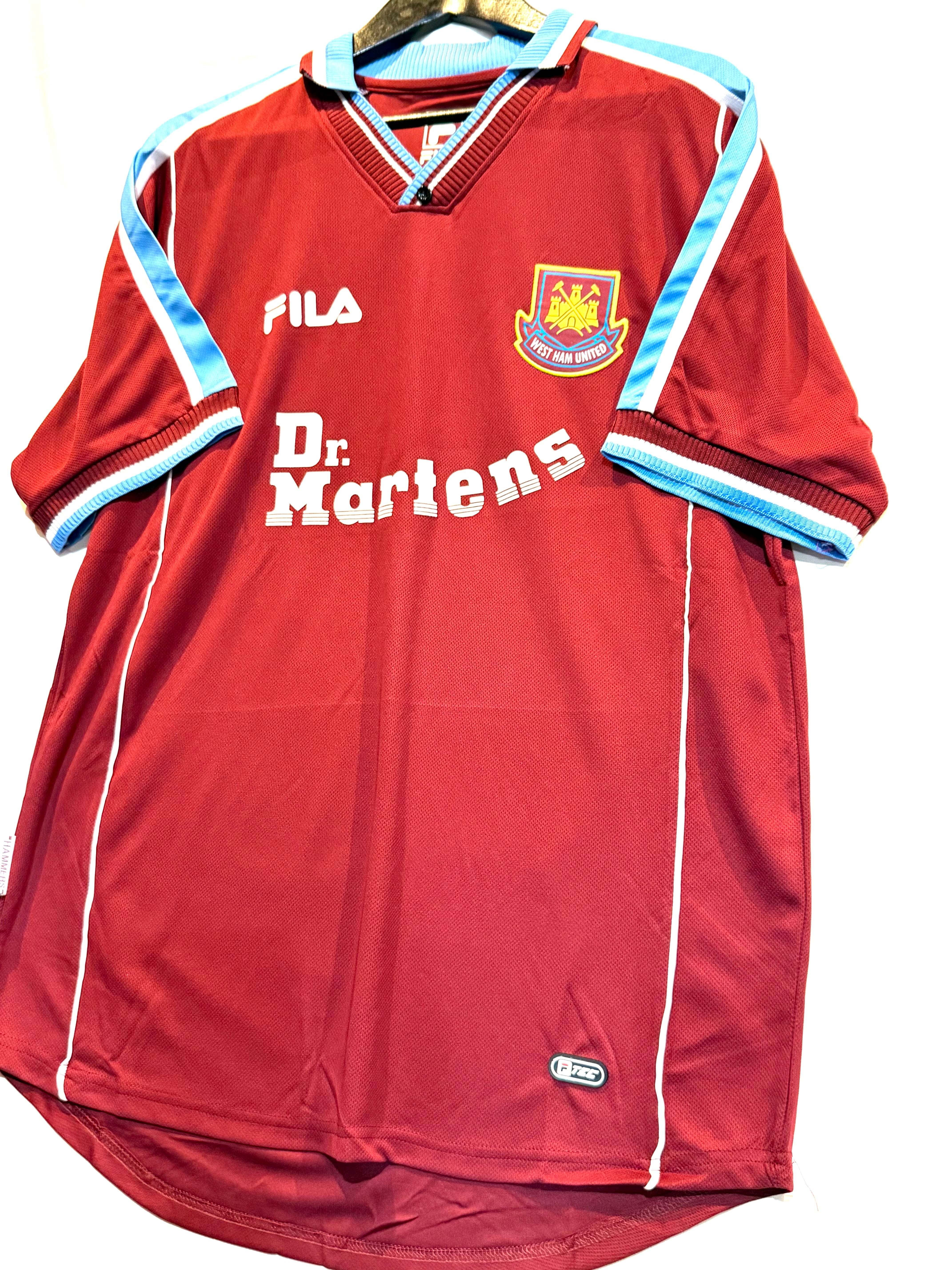 イングランド・プレミアリーグのウェストハム、オフィシャルのフットボールシャツです。ドクターマーチンデザインのものになります。1999-2000シーズンのものになります。コンディションも良く、サラッとした生地感で、ロンTやパーカーの上からなどでも良いかと思います。久しぶりの入荷、気になる方、是非!