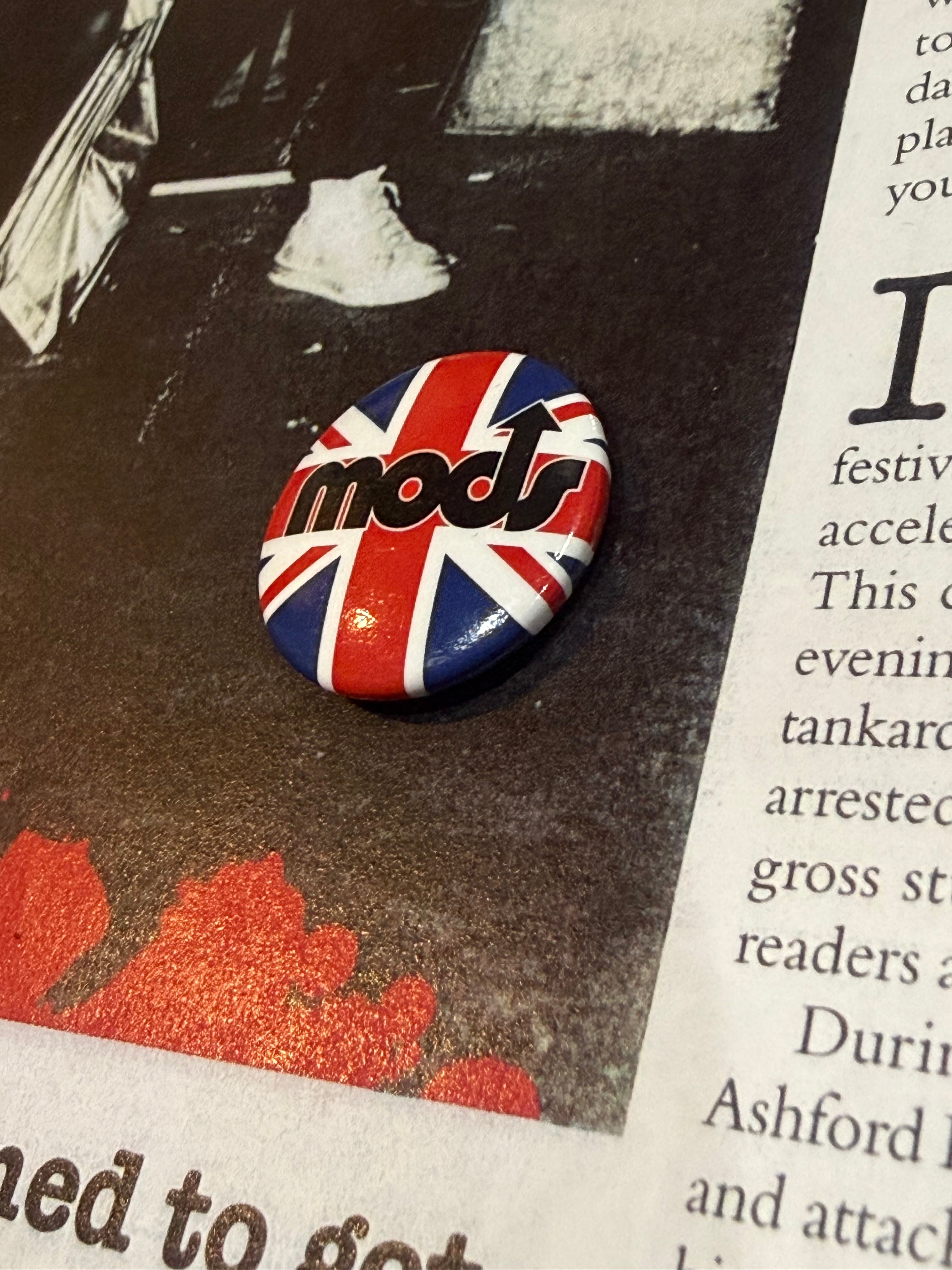 ユニオンジャックオールド缶バッジです。MODSスタイルには必須です。小振りですが、存在感あります。さほど古いものではありませんが、デザイン良いので是非。