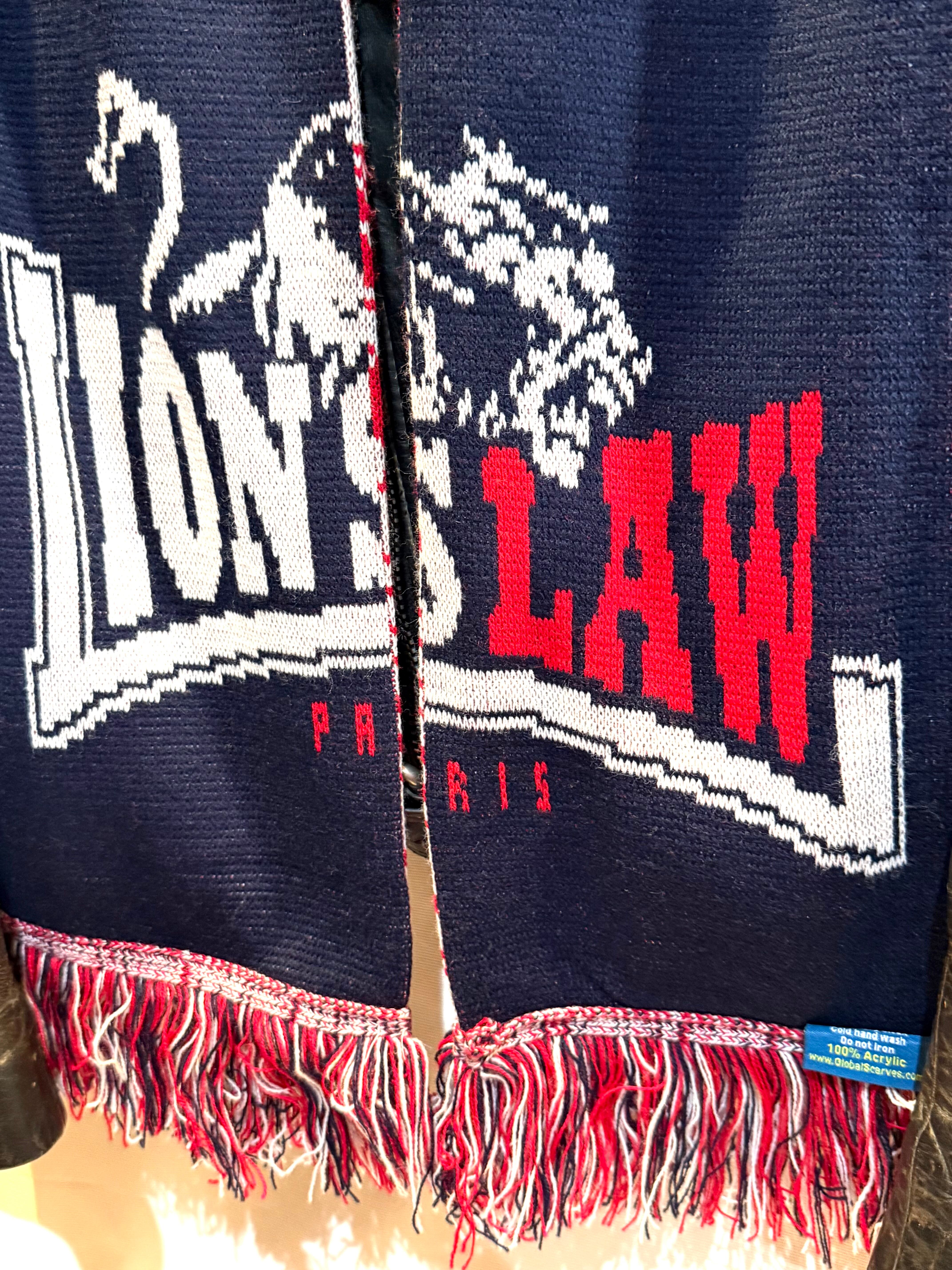 フランス・パリを拠点とするパンク・ロック/Oi!バンドのLion's Lawのマフラーです。2012年頃から活動していたバンドです。一瞬、ロンズデールのものかと思うくらいのUKスタイルです。やはりUK製というのがポイント高いです。パンク、モッズスタイルの冬の定番アイテム。カラーリング・デザインともに文句無しのマフラーです。このバンドのものは珍しいです。オススメです。