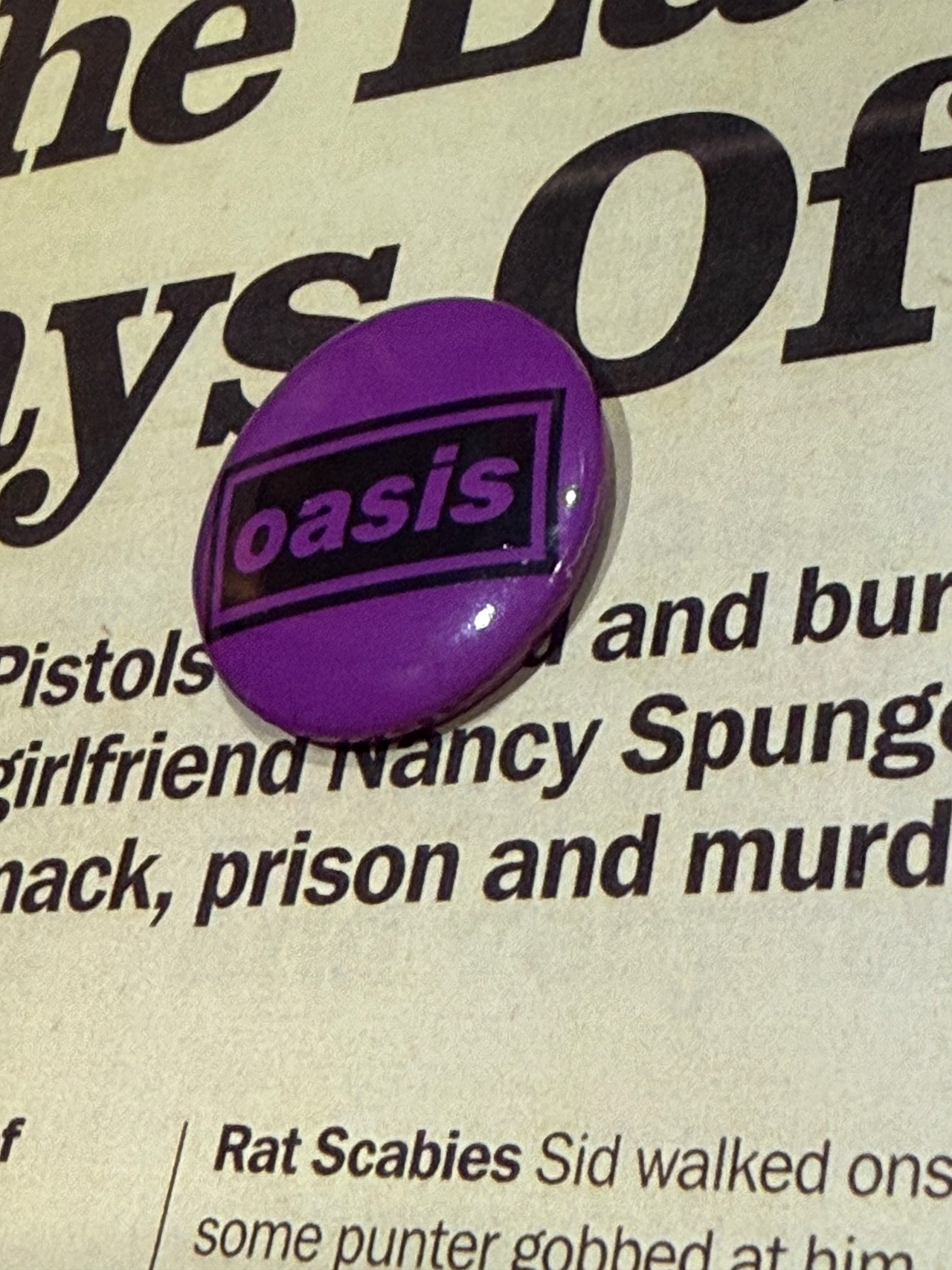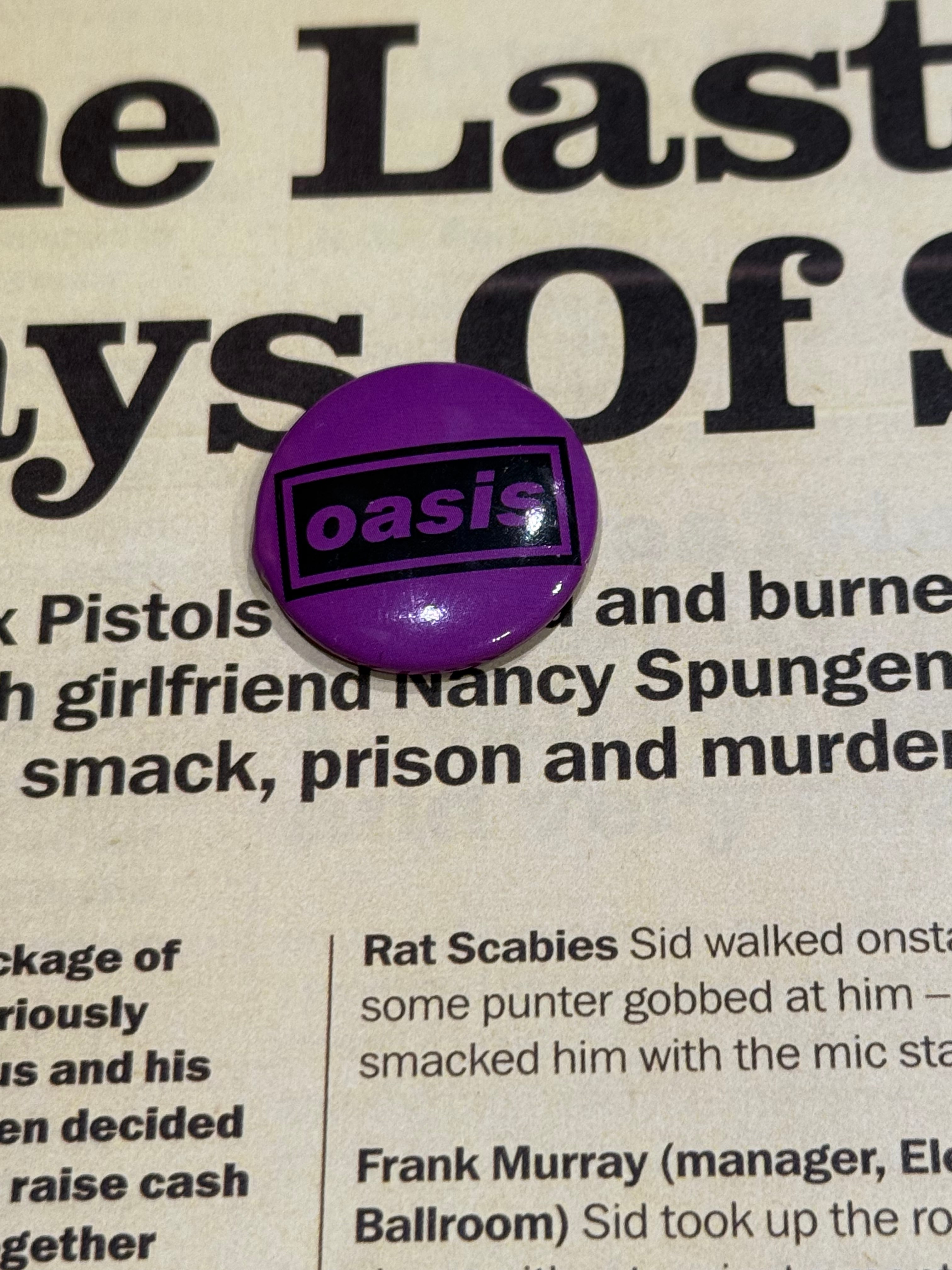 お馴染みのオアシスのバッジです。古いものではありませんが、パープルは珍しいです。おススメです。