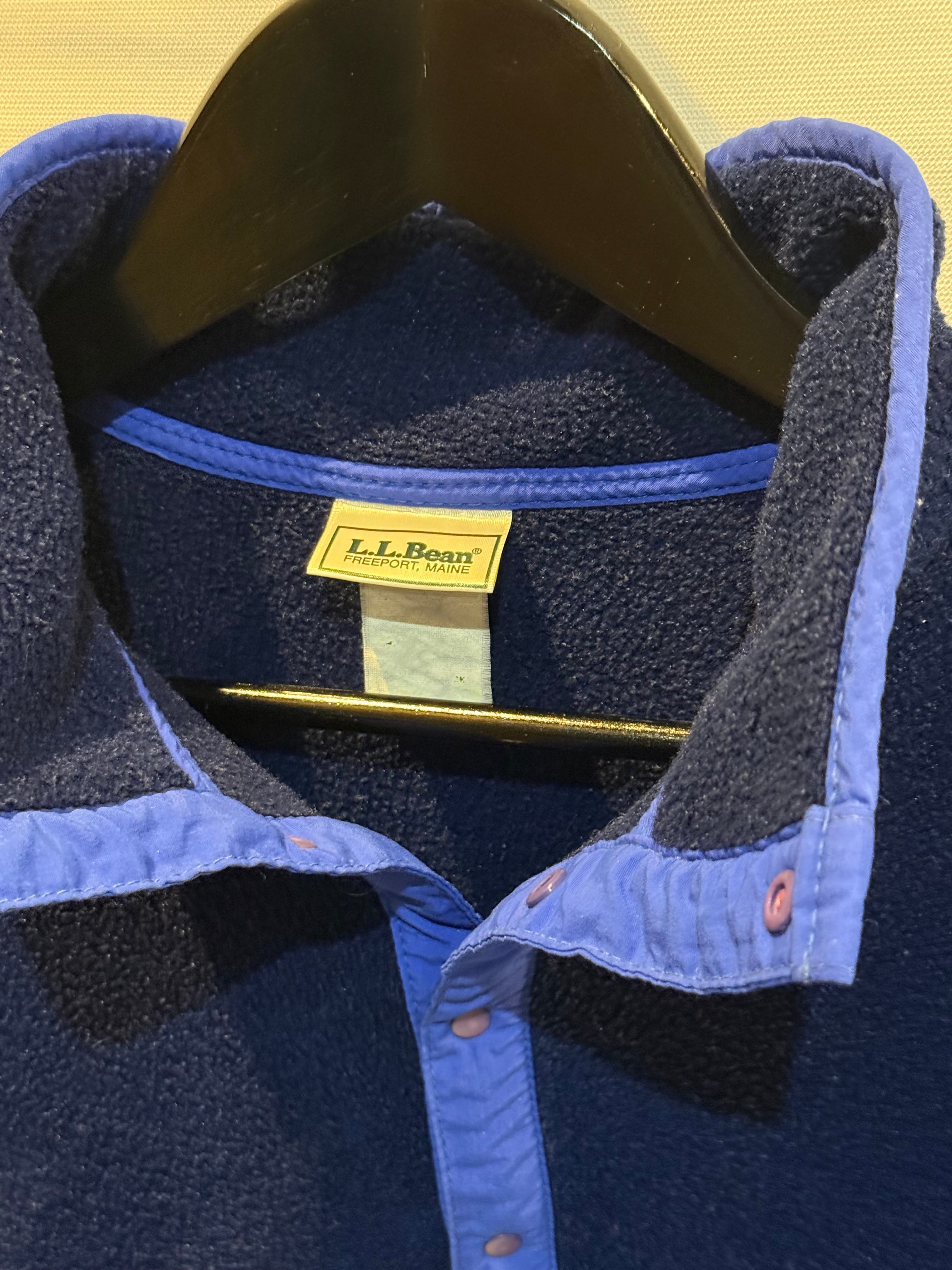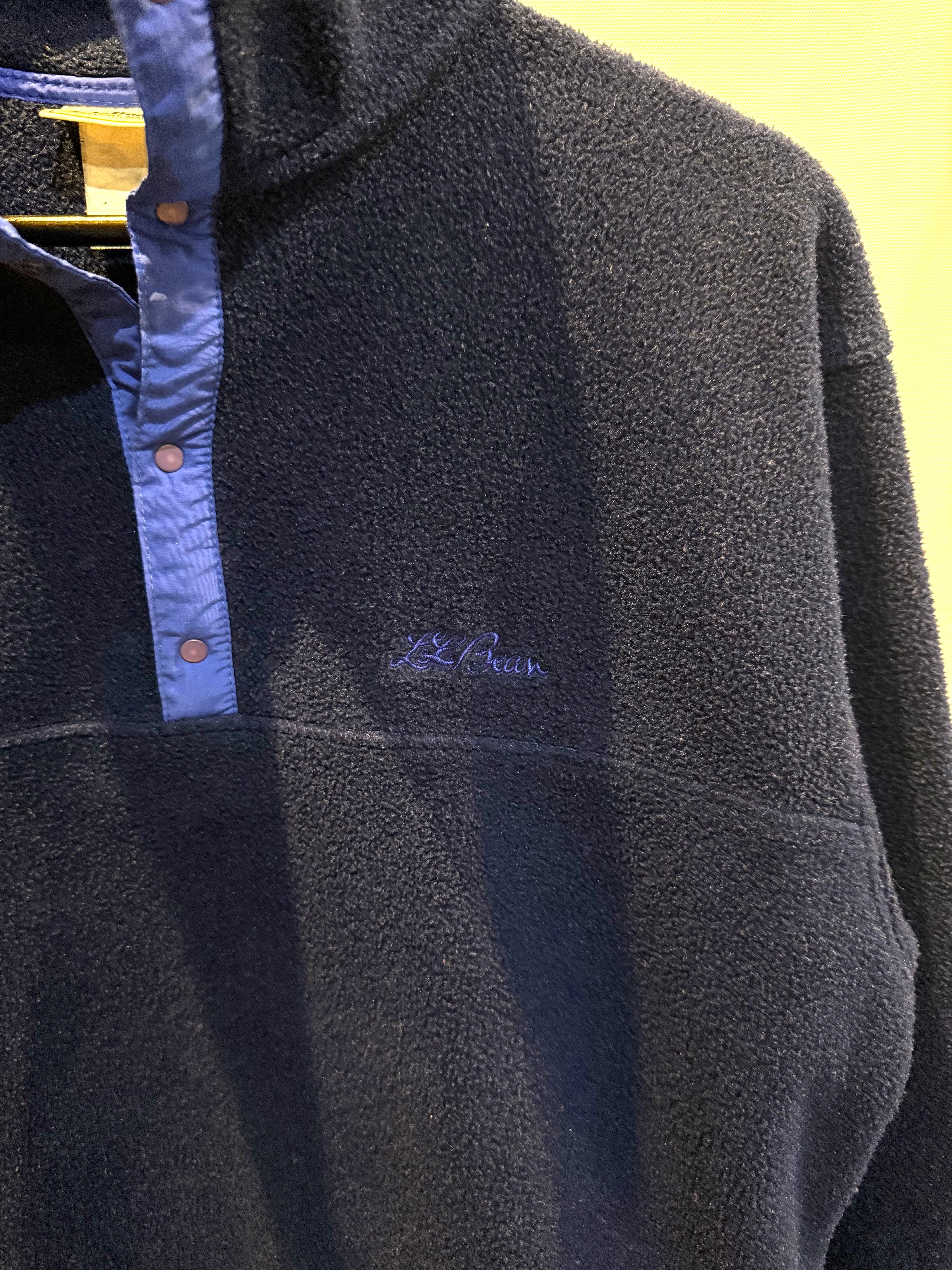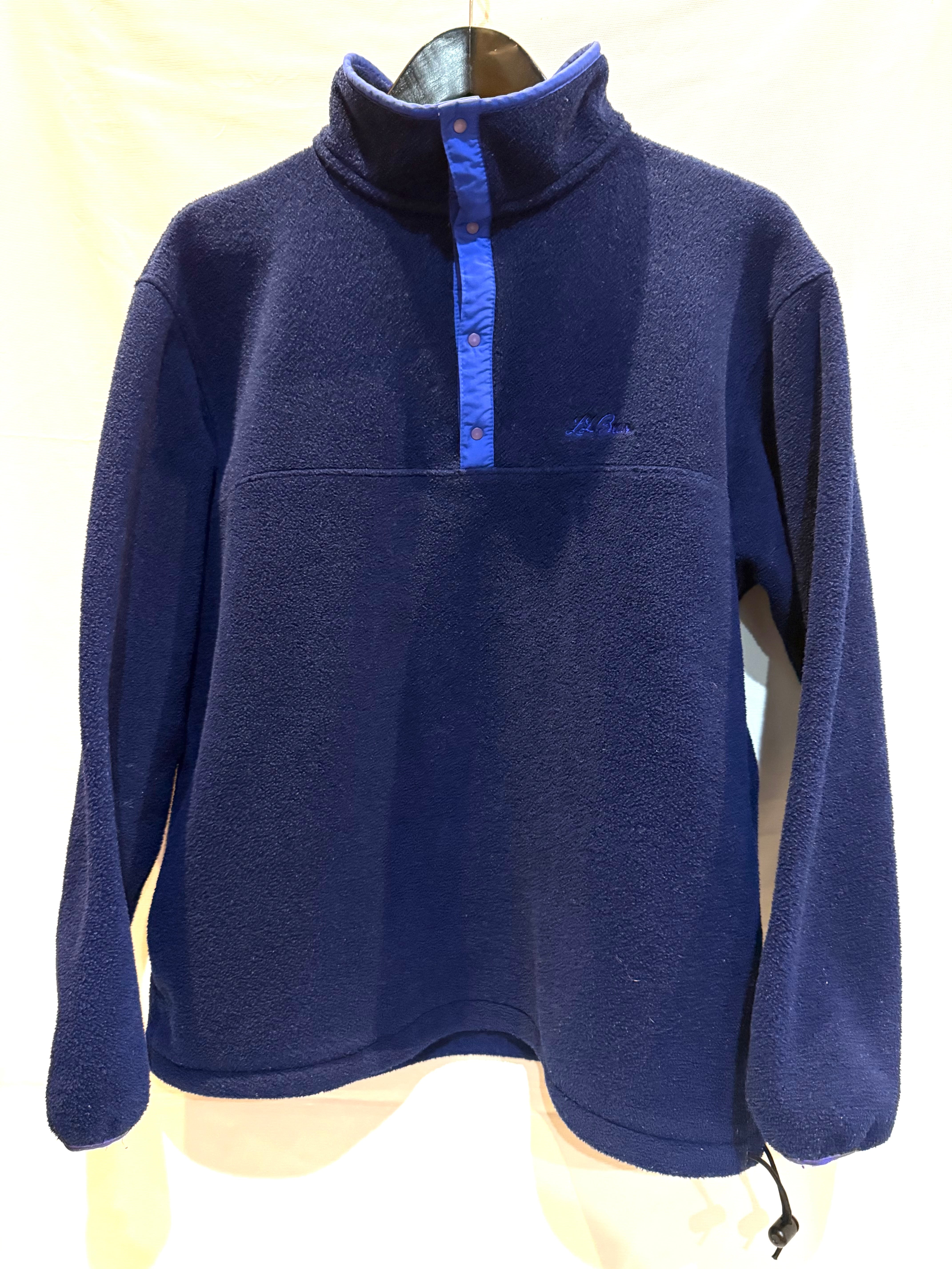 LLビーンのフリースプルオーバーです。80〜90年代頃のものでしょうか。スタンダードモデルですね。使用感はありますが、一枚あると、何かと重宝します。ライダースのインなどにも良いかと。Oldモデルは貴重です。オススメです。