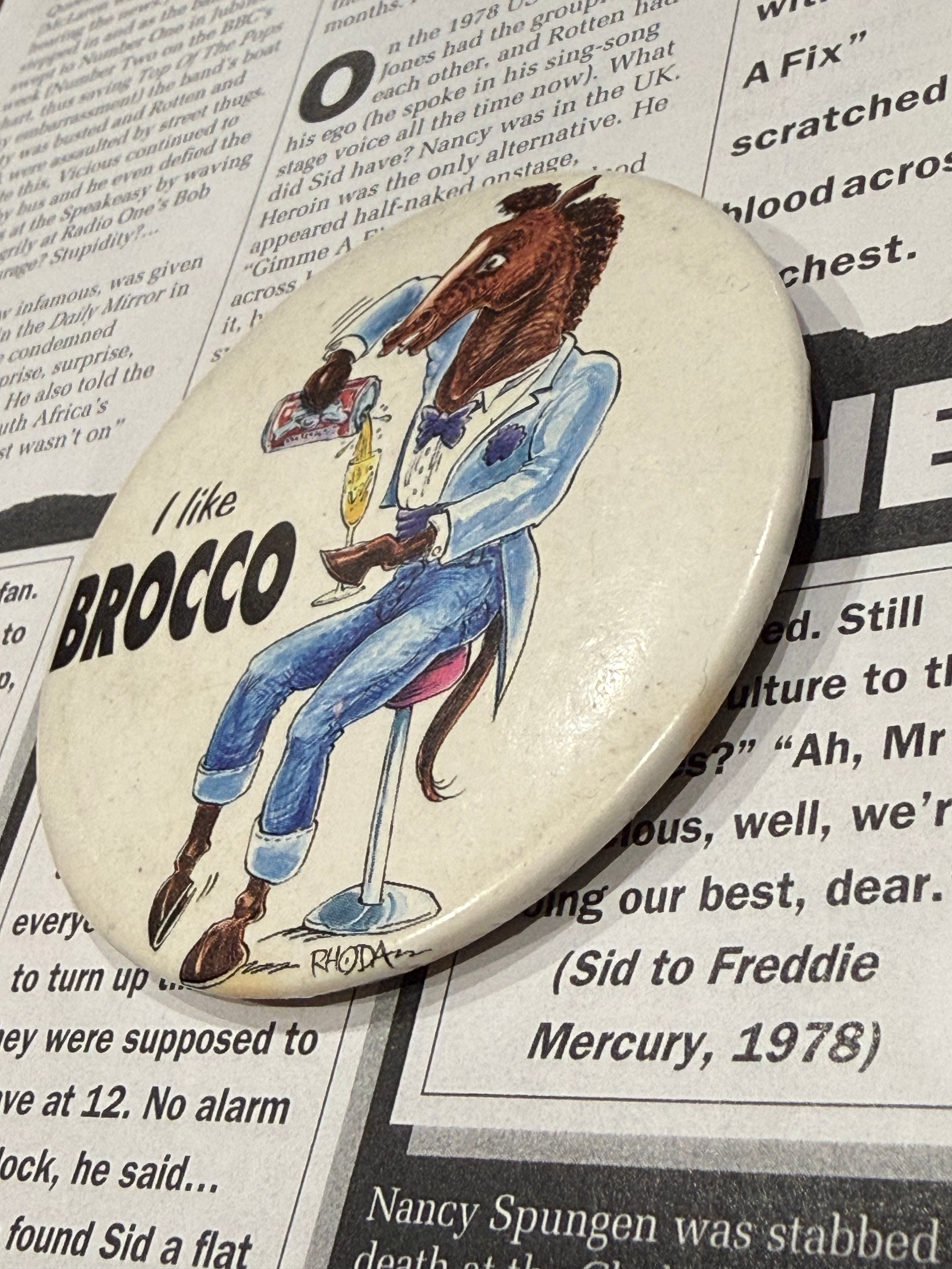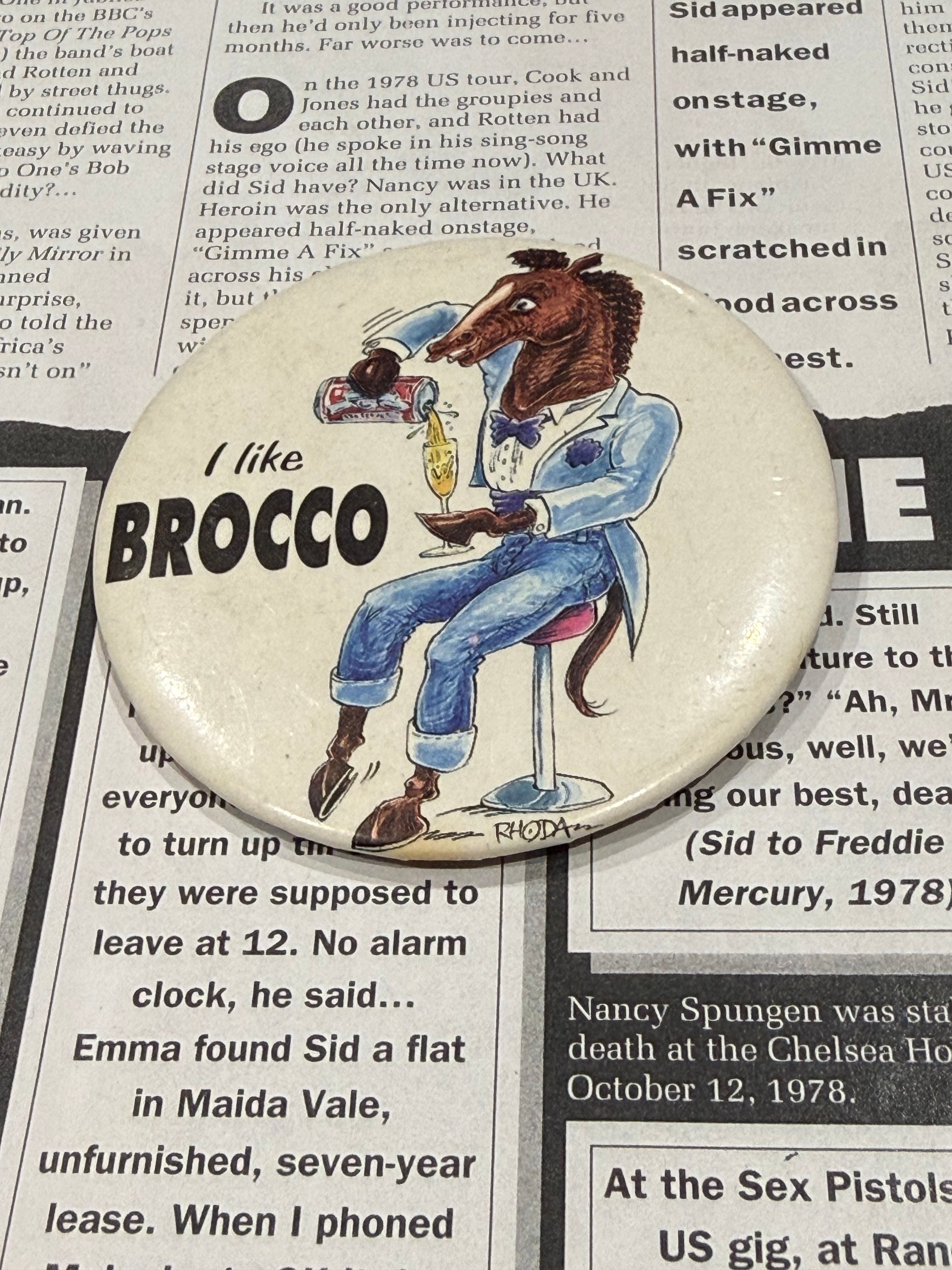 19世紀初頭に活躍したイギリスのサラブレッド競走馬)をコミカルに描いたものだと思われます。ビッグサイズでインパクトあります。丙午の今年にぴったりなヴィンテージバッジ、おすすめです。