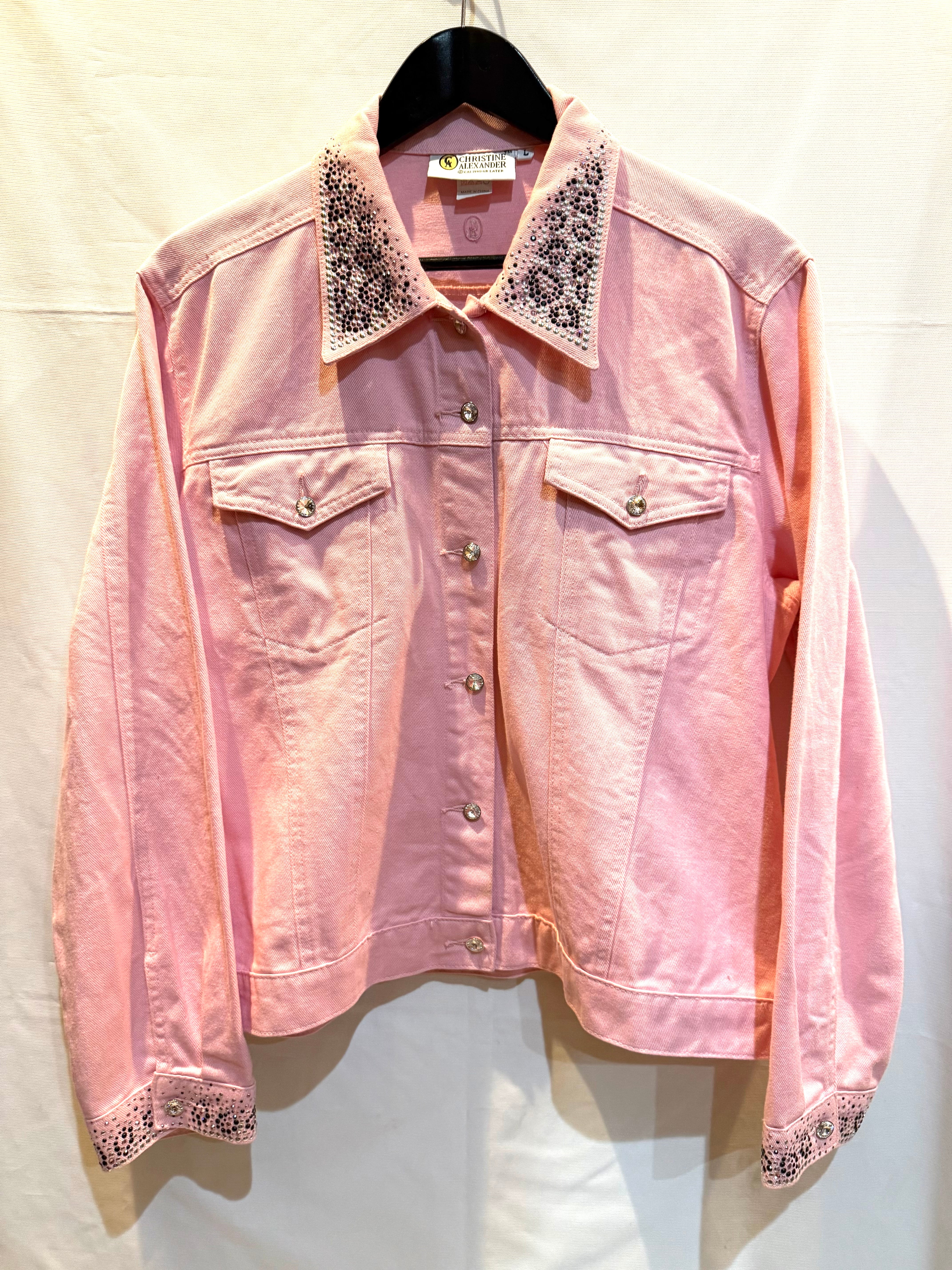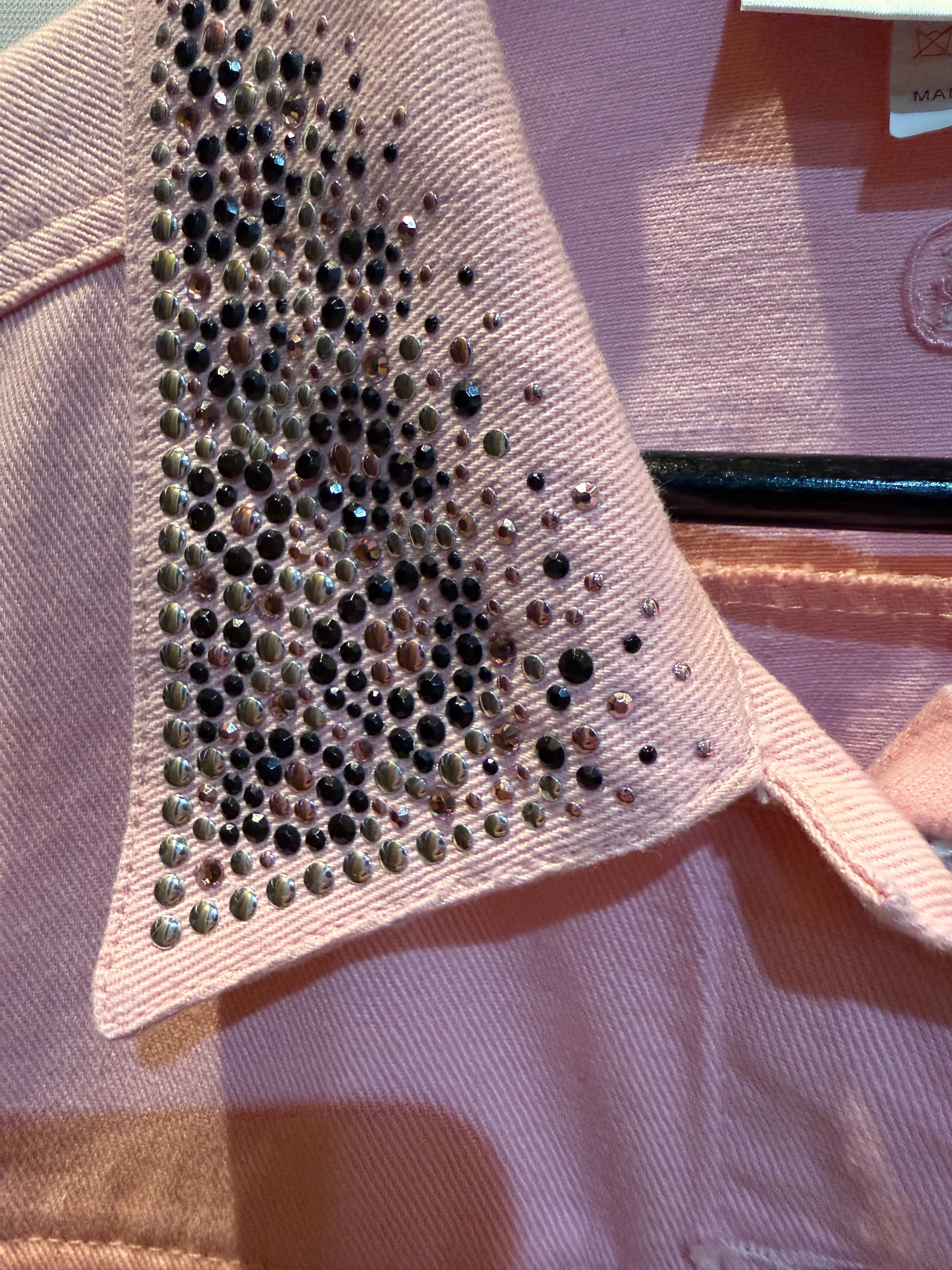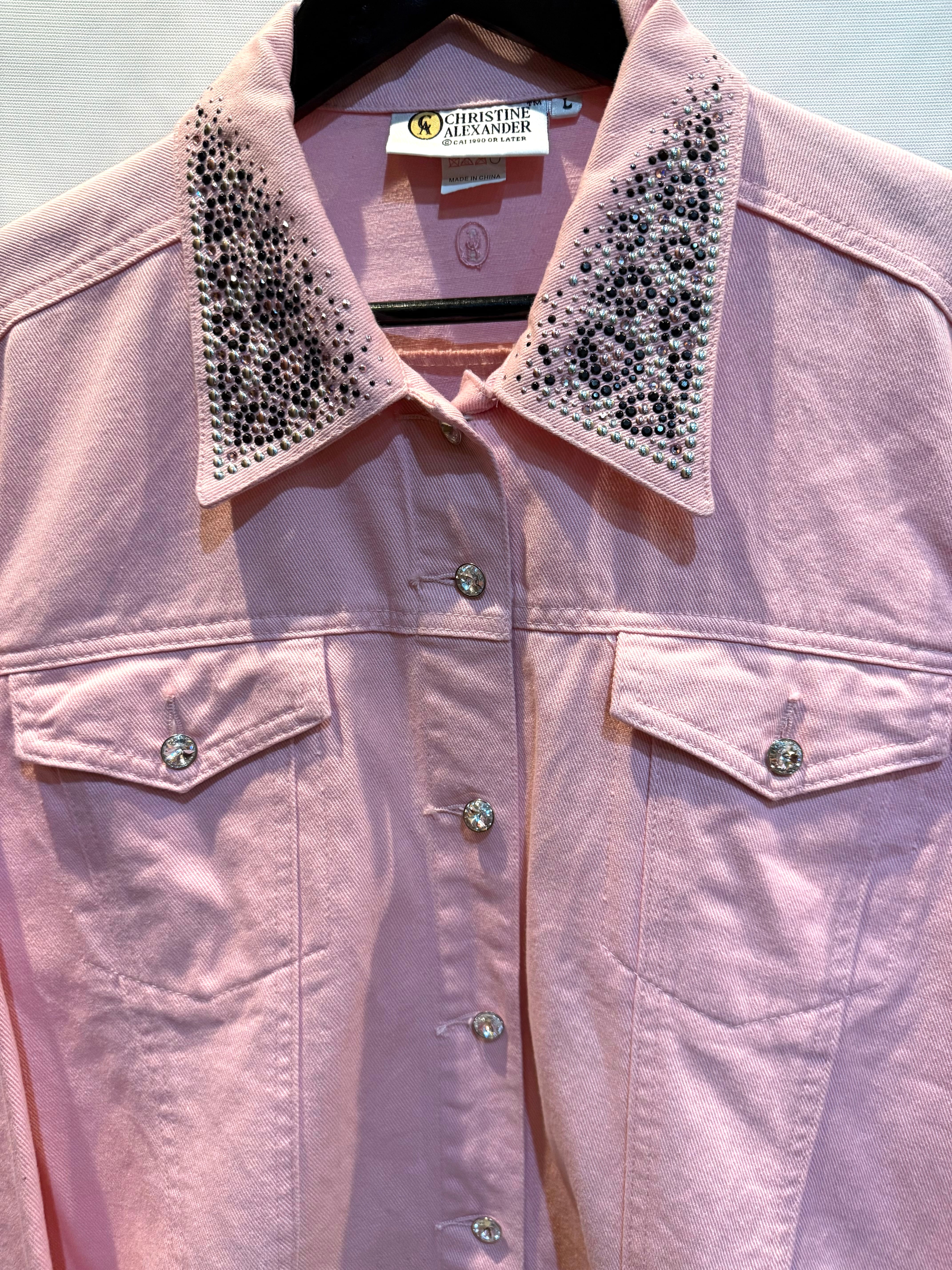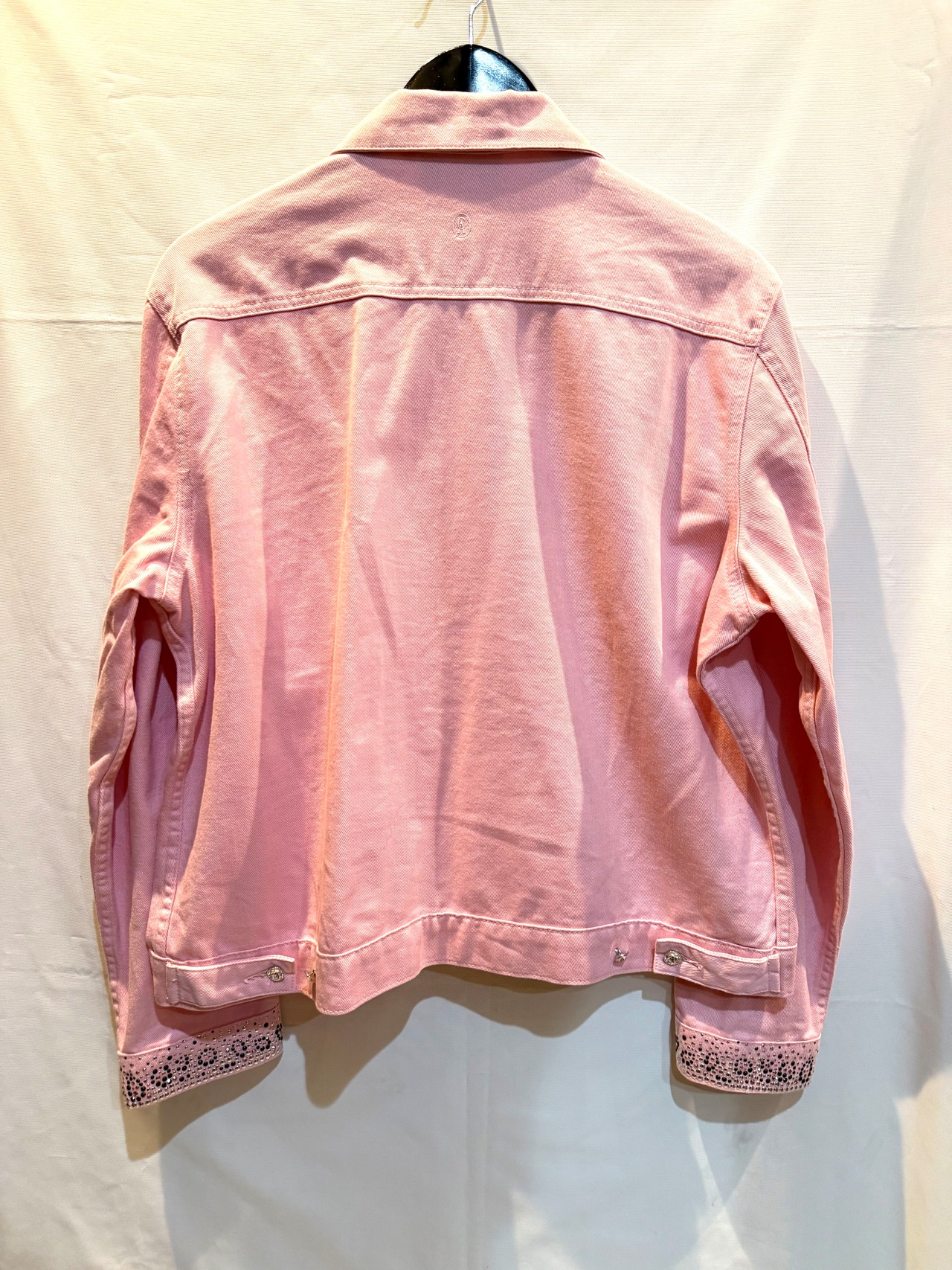 90年代のピンクデニムジャケットです。Christine Alexanderのジャケットで、豪華装飾が特長のブランドになります。春らしいカラーリングが良いですね。サイズも大きめで、フードを合わせたりしても良いかと思います。オススメですので是非。