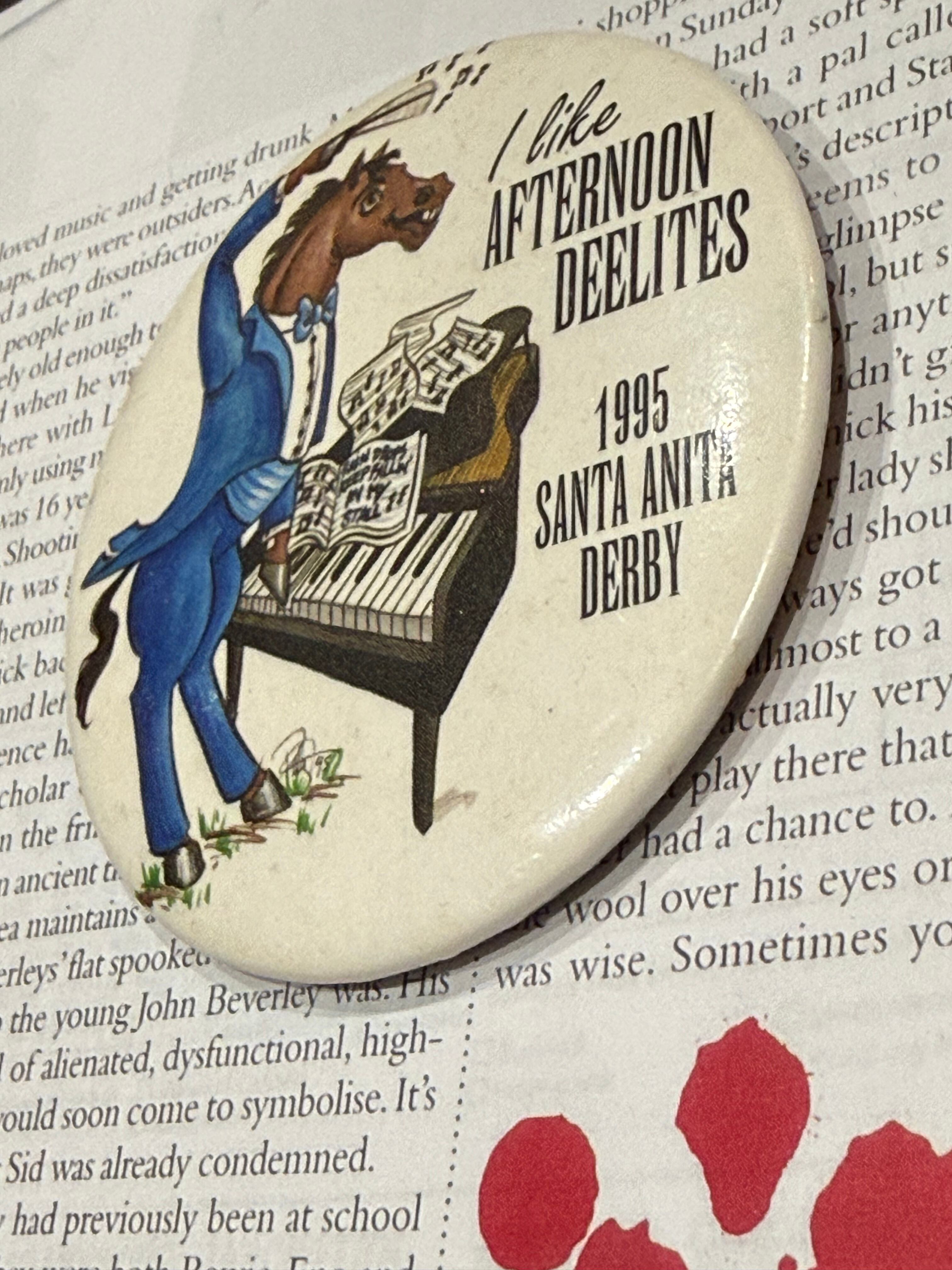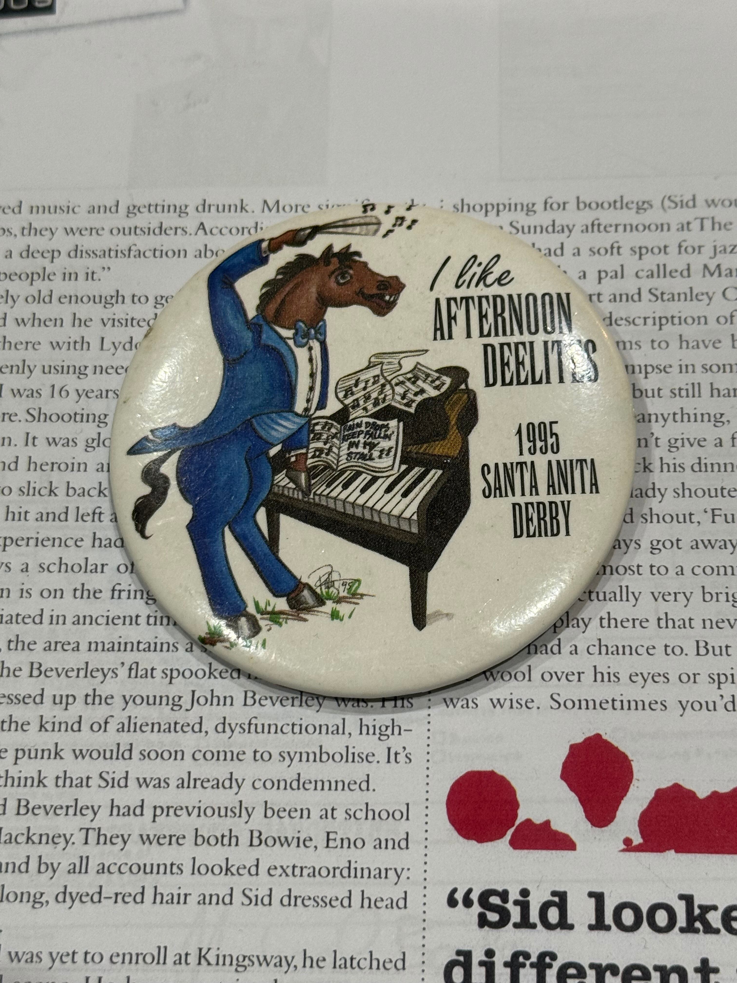 19世紀初頭に活躍したイギリスのサラブレッド競走馬)をコミカルに描いたものだと思われます。ビッグサイズでインパクトあります。丙午の今年にぴったりなヴィンテージバッジ、おすすめです。