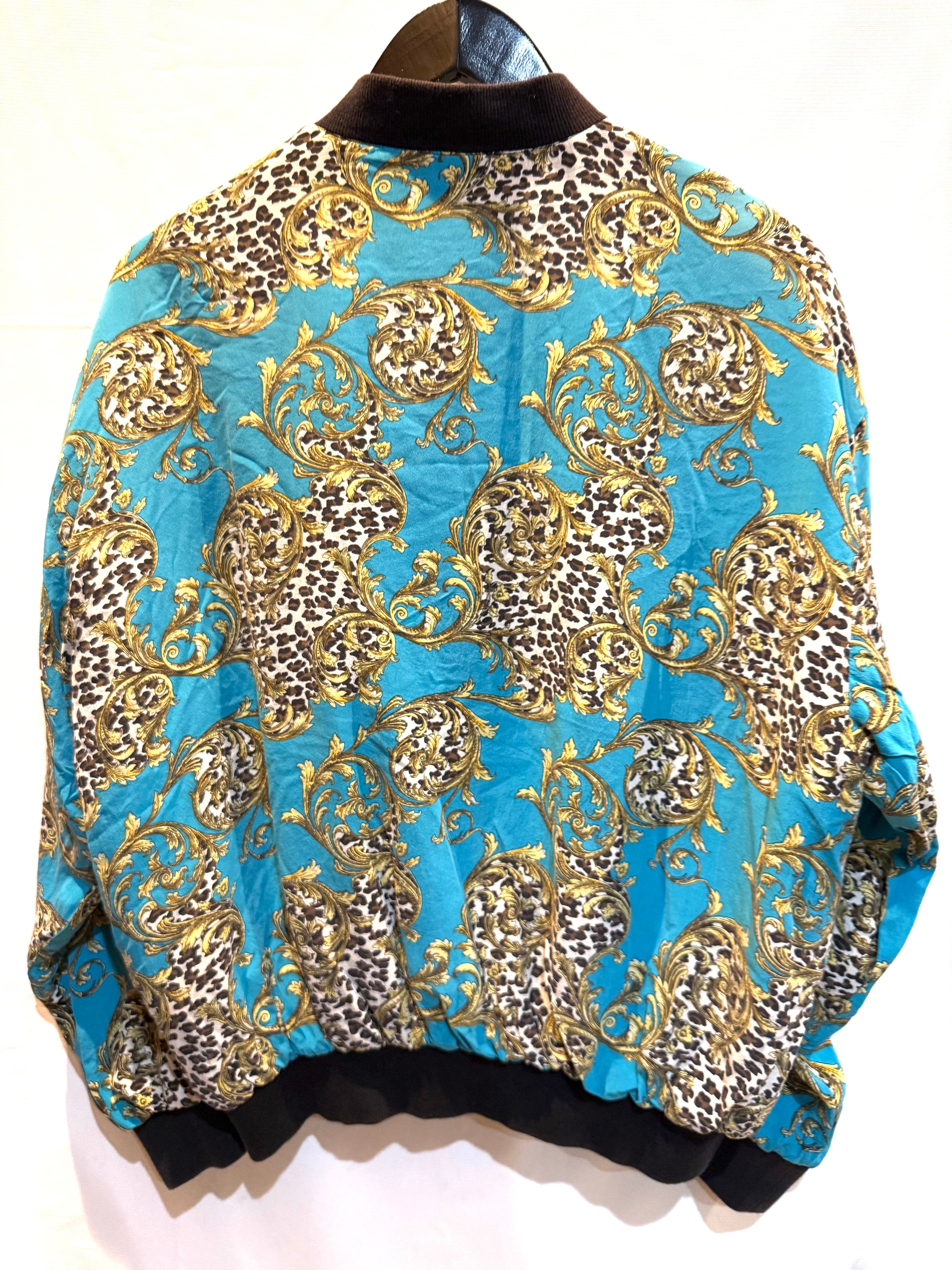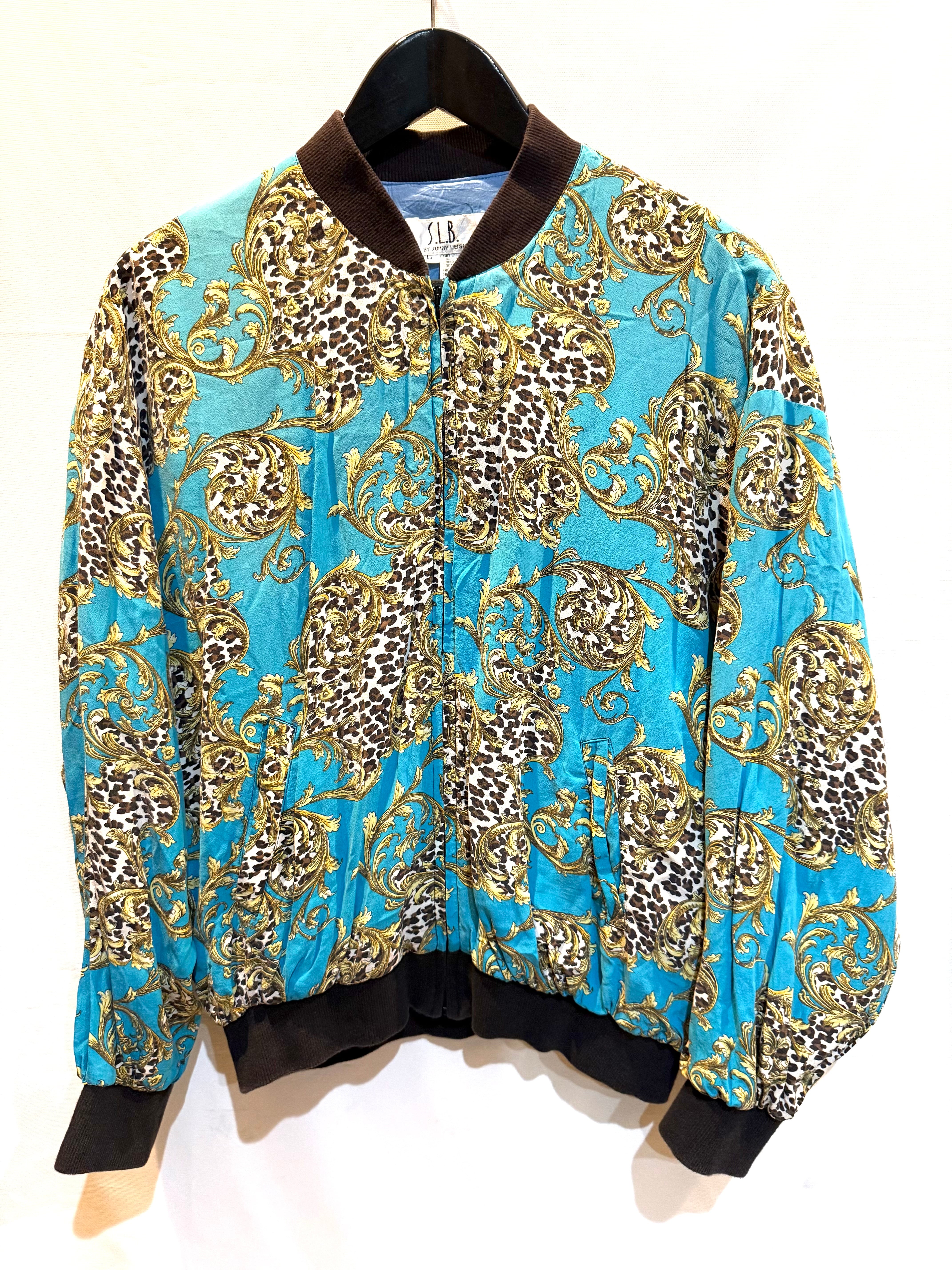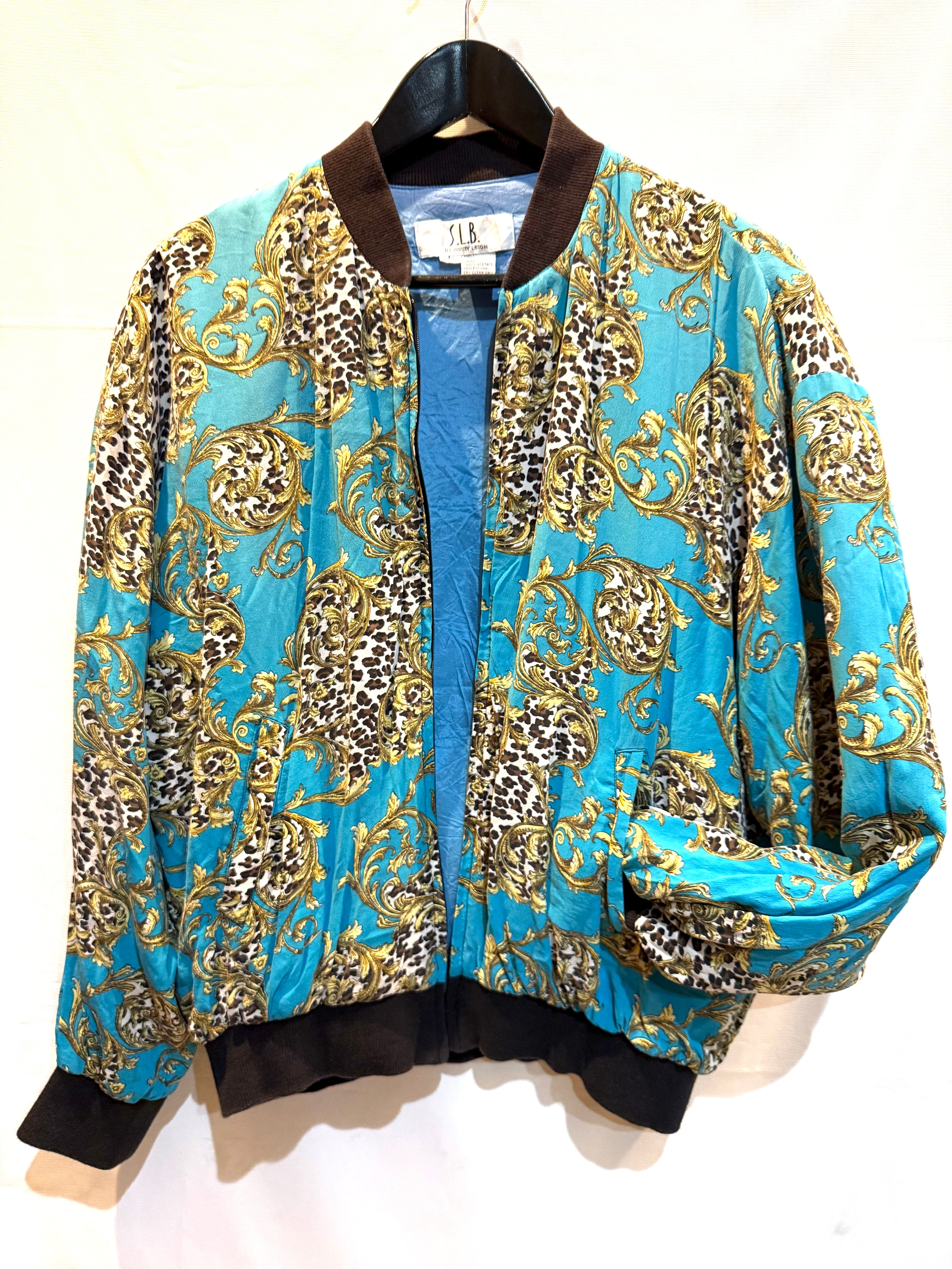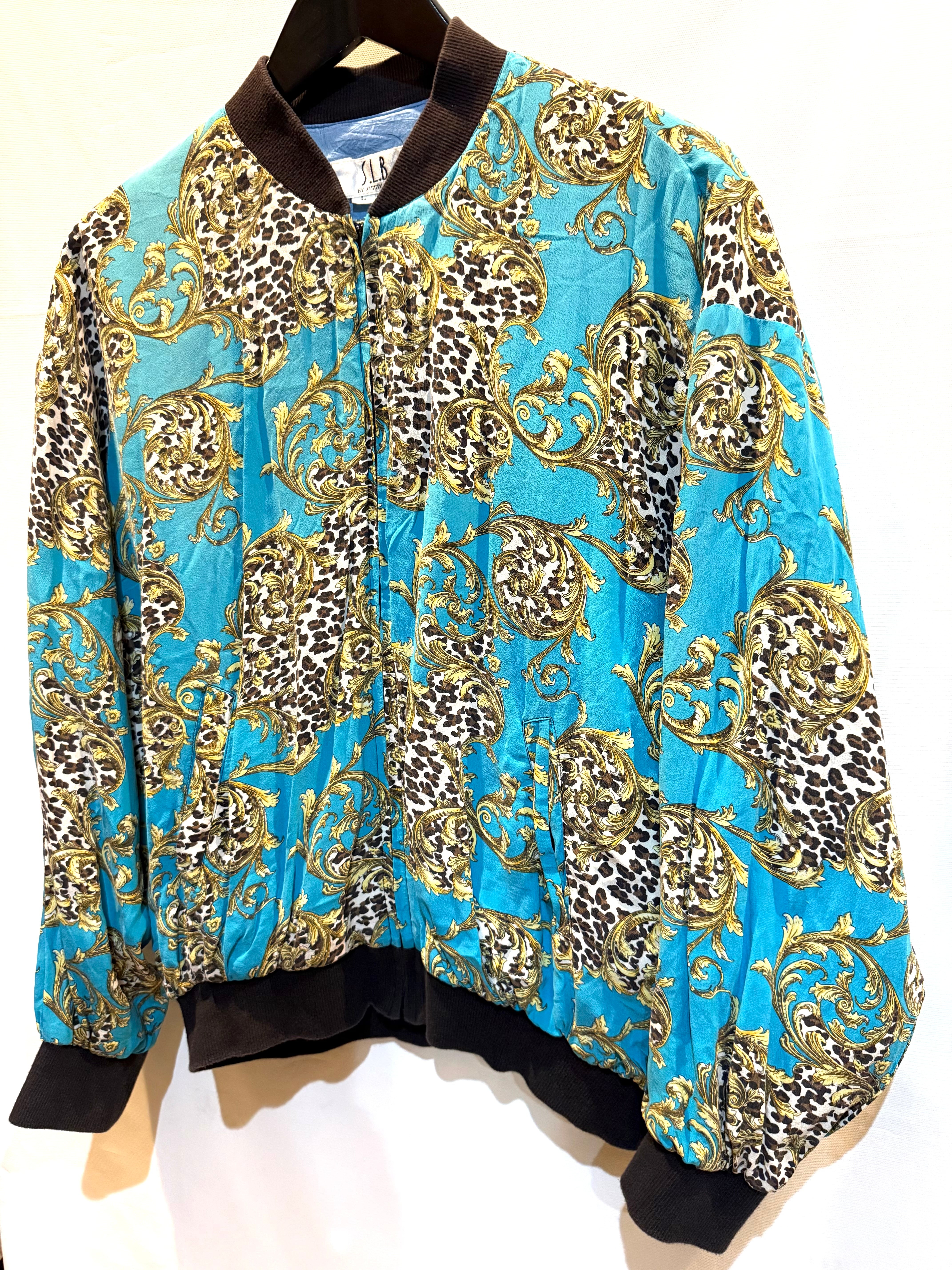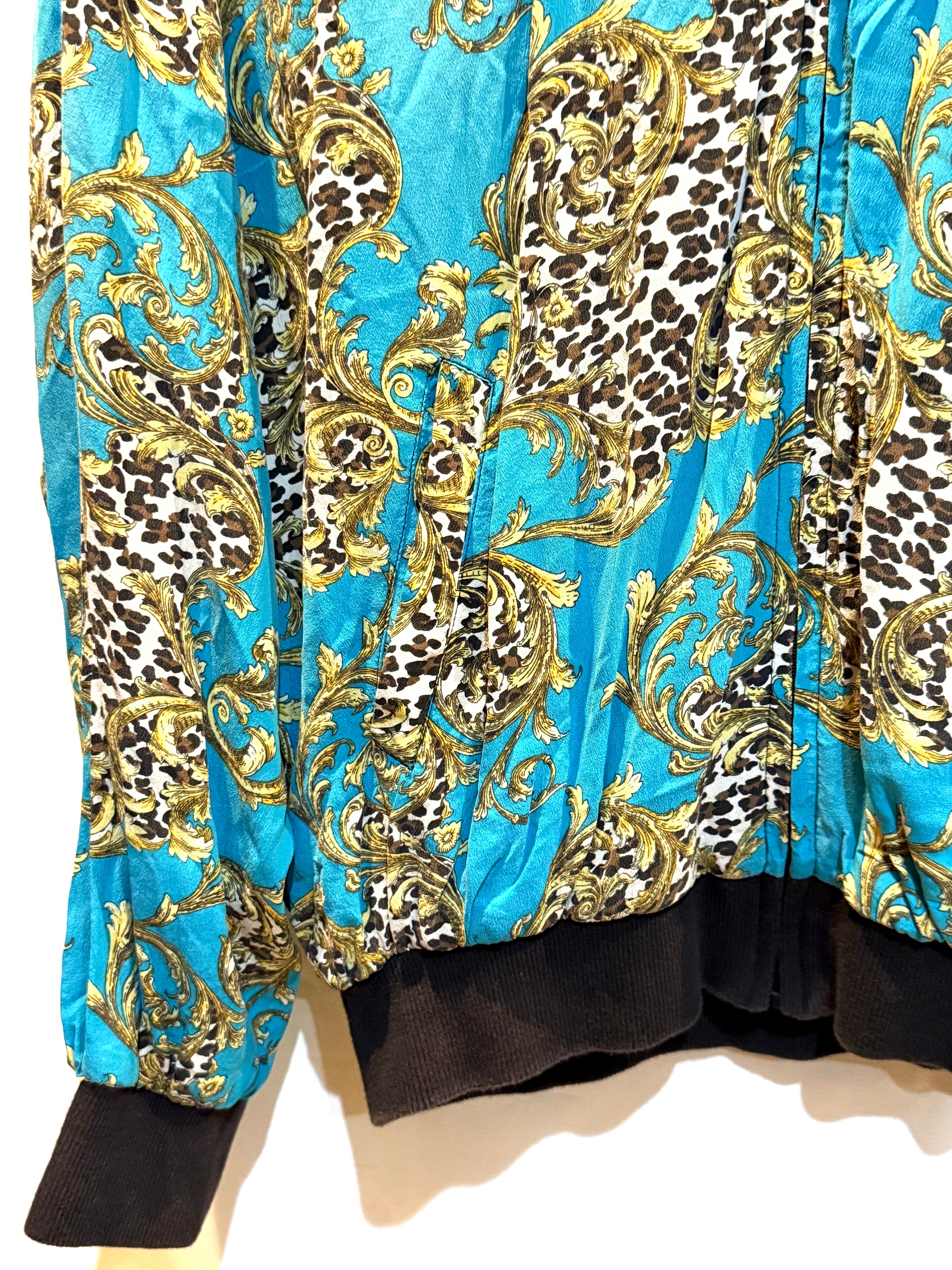 1980〜90年代ジップアップタイプのシルク製ジャケットです。光沢のあるシルク生地でカラーリングが非常に良いです。レオパードパターンは珍しいです。生地は軽く、幅広いシーズンで重宝すると思います。おススメです。是非!