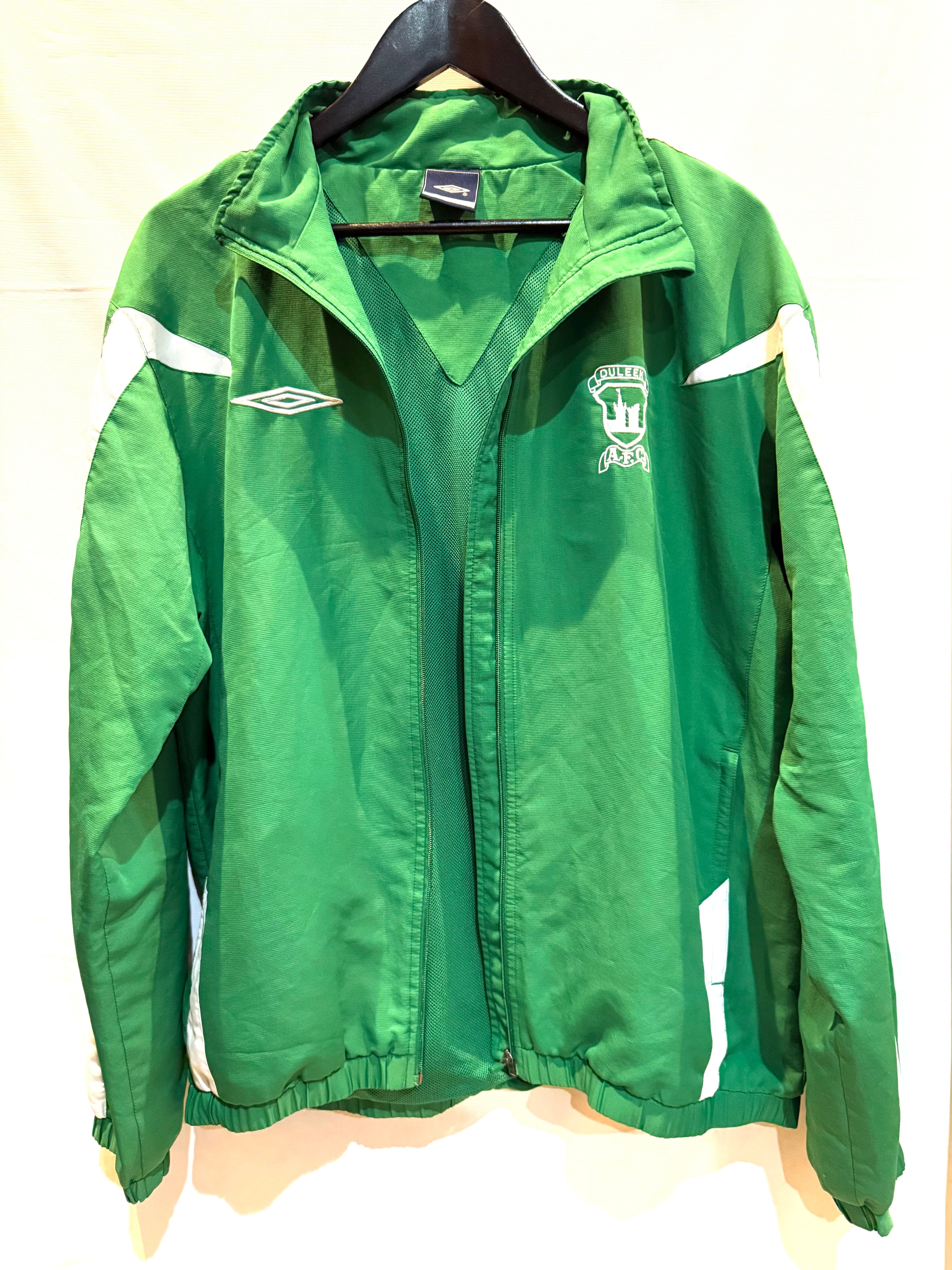 UKミュージシャン御用達、アンブロのジップアップジャケットです。こちらはグリーンボディにホワイトライン。爽やかな印象のジャケットです。メッシュ裏地で、長い期間重宝するアイテムです。おススメです。