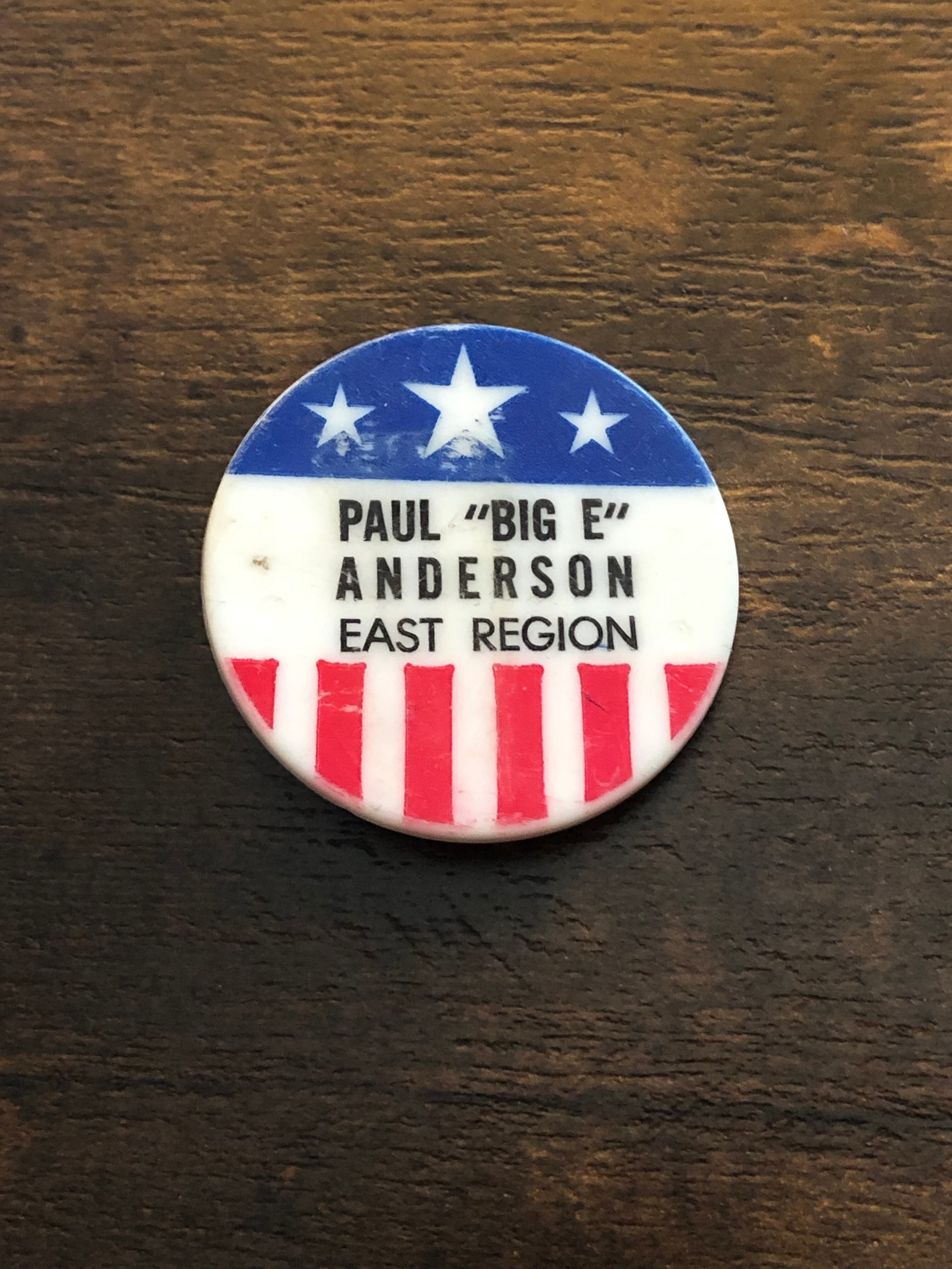 星条旗柄のプラスチック製のバッジになります。60~70年代くらいのものだと思います。シャツのポケットなどに差し込んで付けられます。(薄い生地のシャツだとちょっと緩め)BIG Eというのが特に良いです。珍しいので是非!