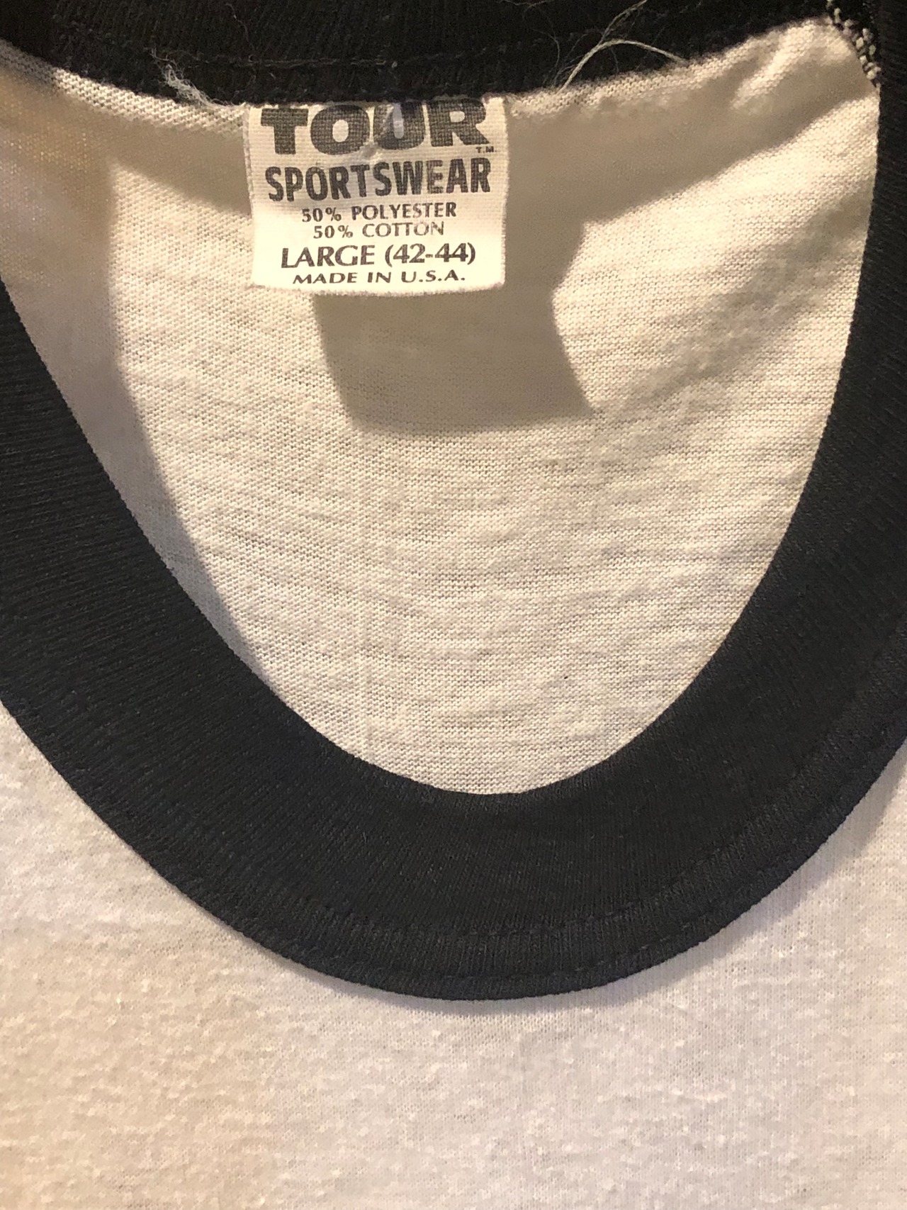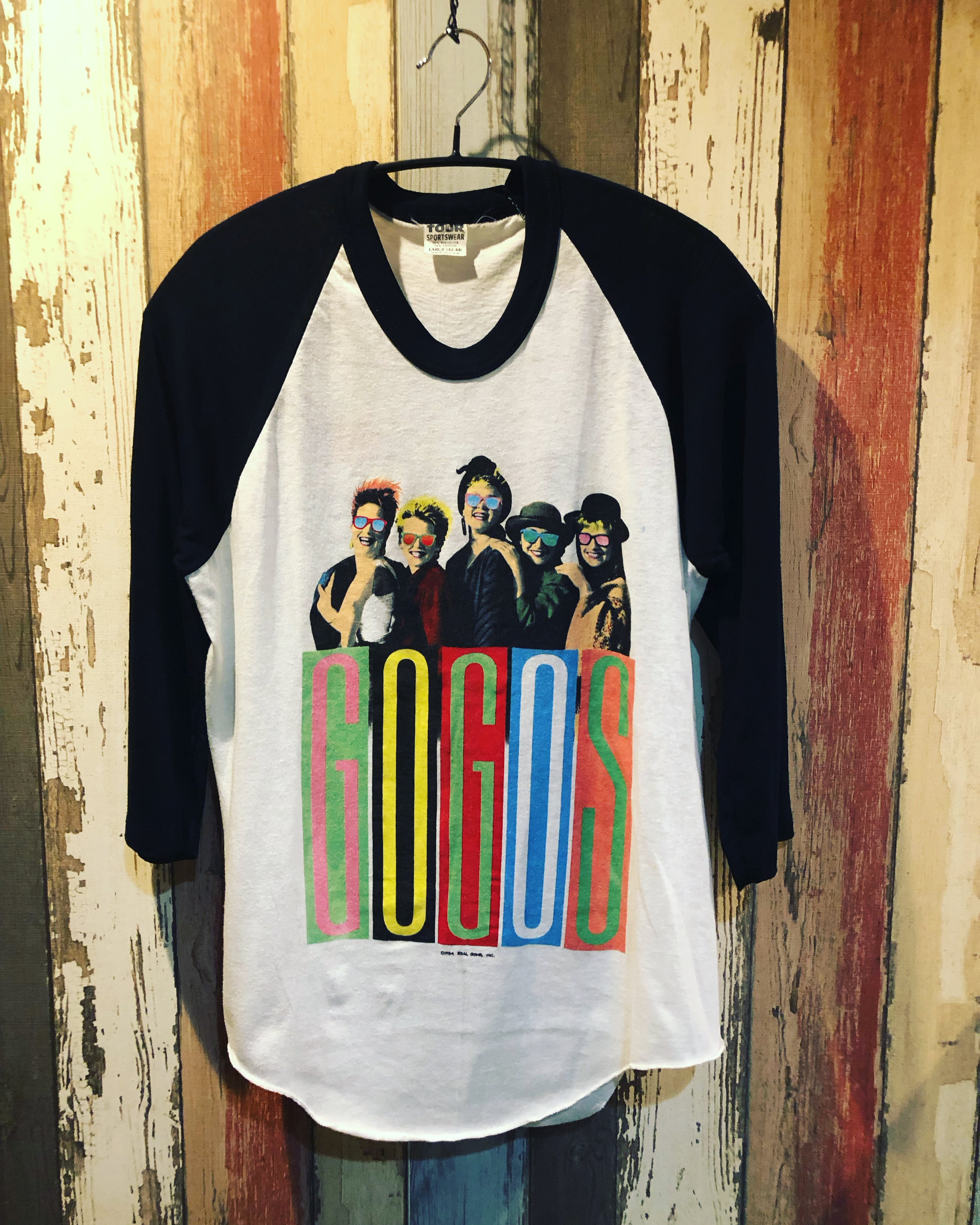 80年代にアメリカで一世を風靡したガールズバンド、ゴーゴーズの1984年のツアーTシャツになります。ベースボールシャツのタイプになります。フォトもロゴもバランス良く配置されていて良いですよ。日本ではボーカルのベリンダの知名度はありますが、グループの知名度は低いですね。アメリカでは今でも結構人気あります。なかなか出てこないTシャツですので是非!