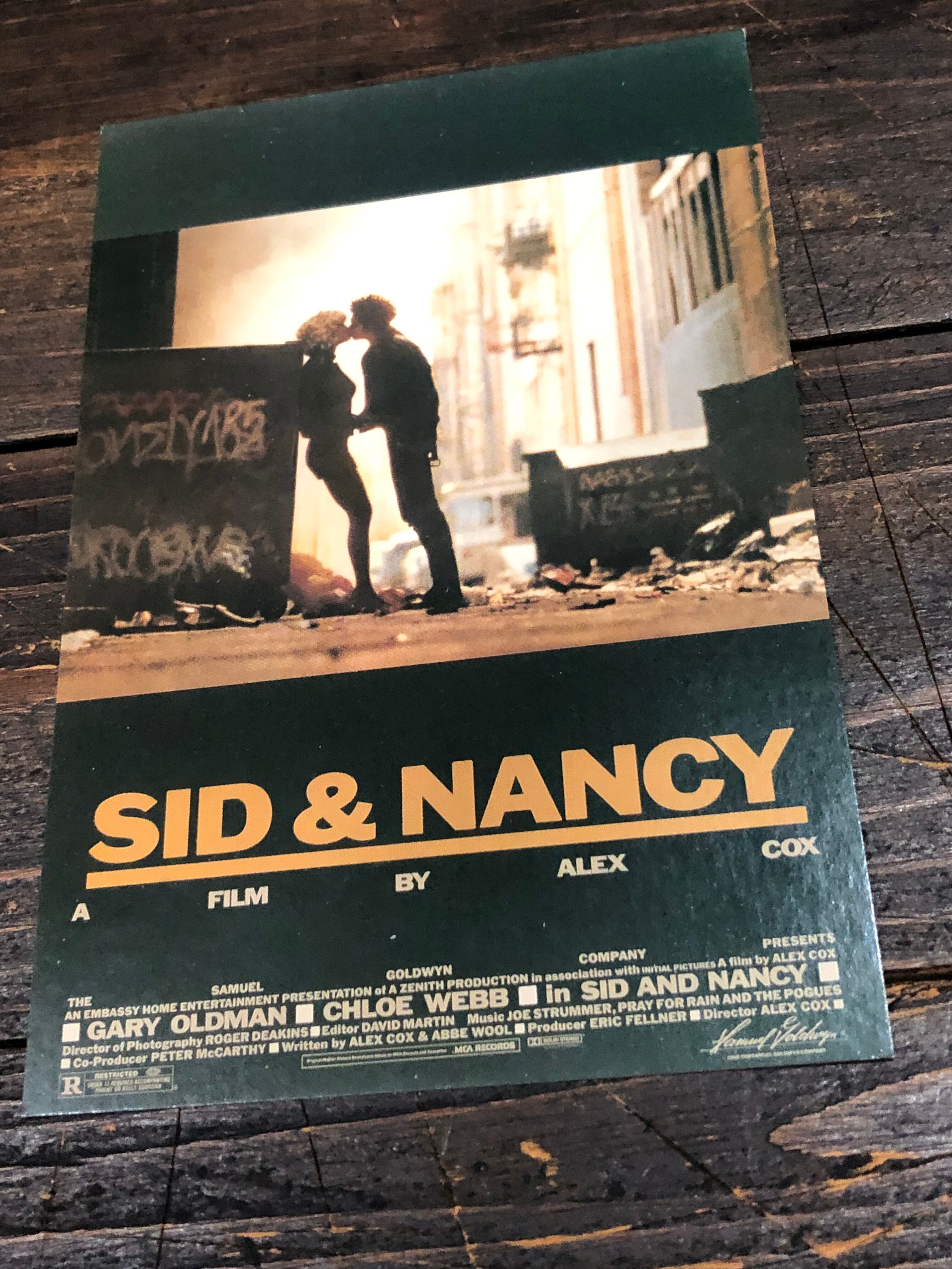 1986年の映画、シド&ナンシーのポストカードになります。90年代後期頃のものです。今はあまり無いかと思います。額装すると、なかなか雰囲気があって良いかと思います。是非!