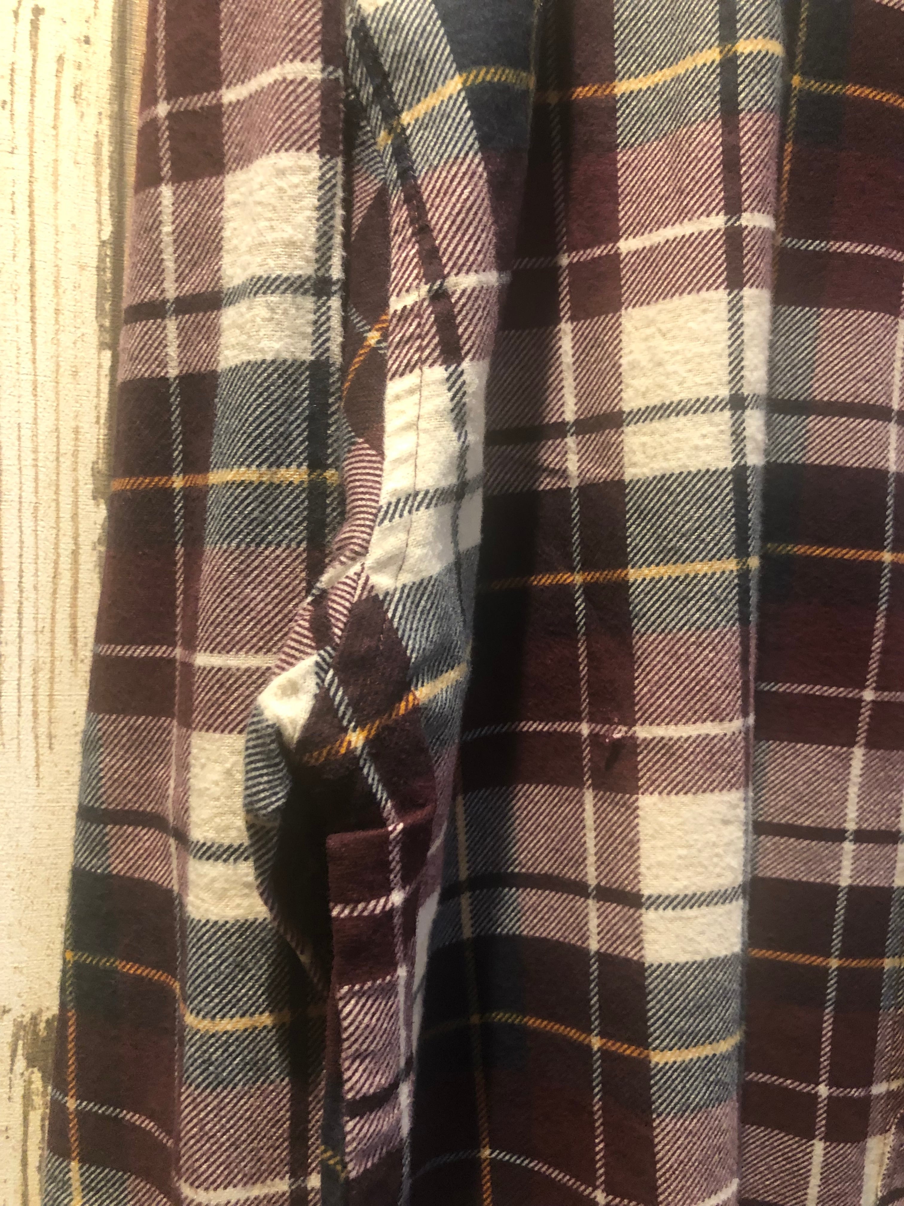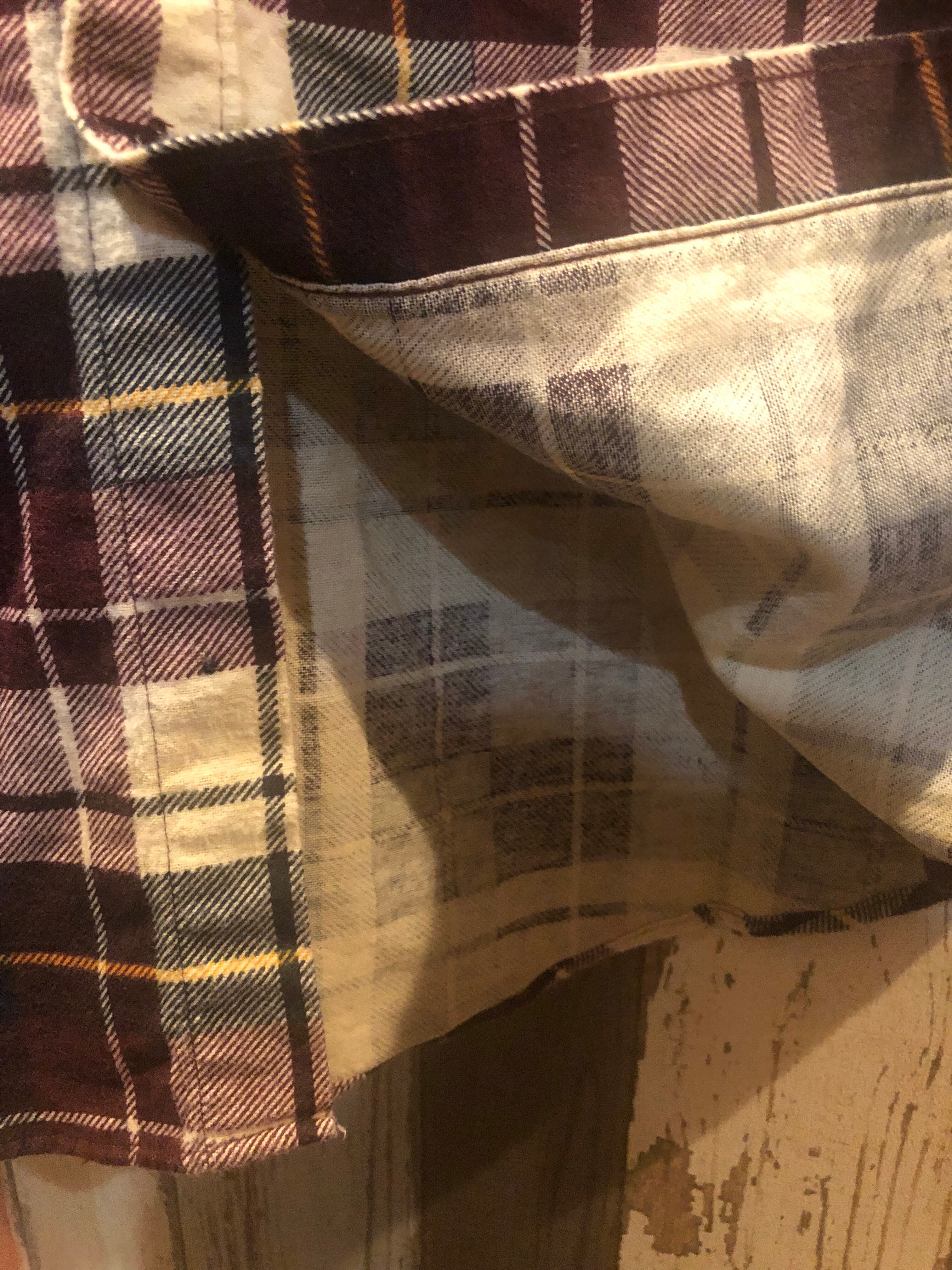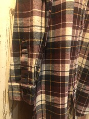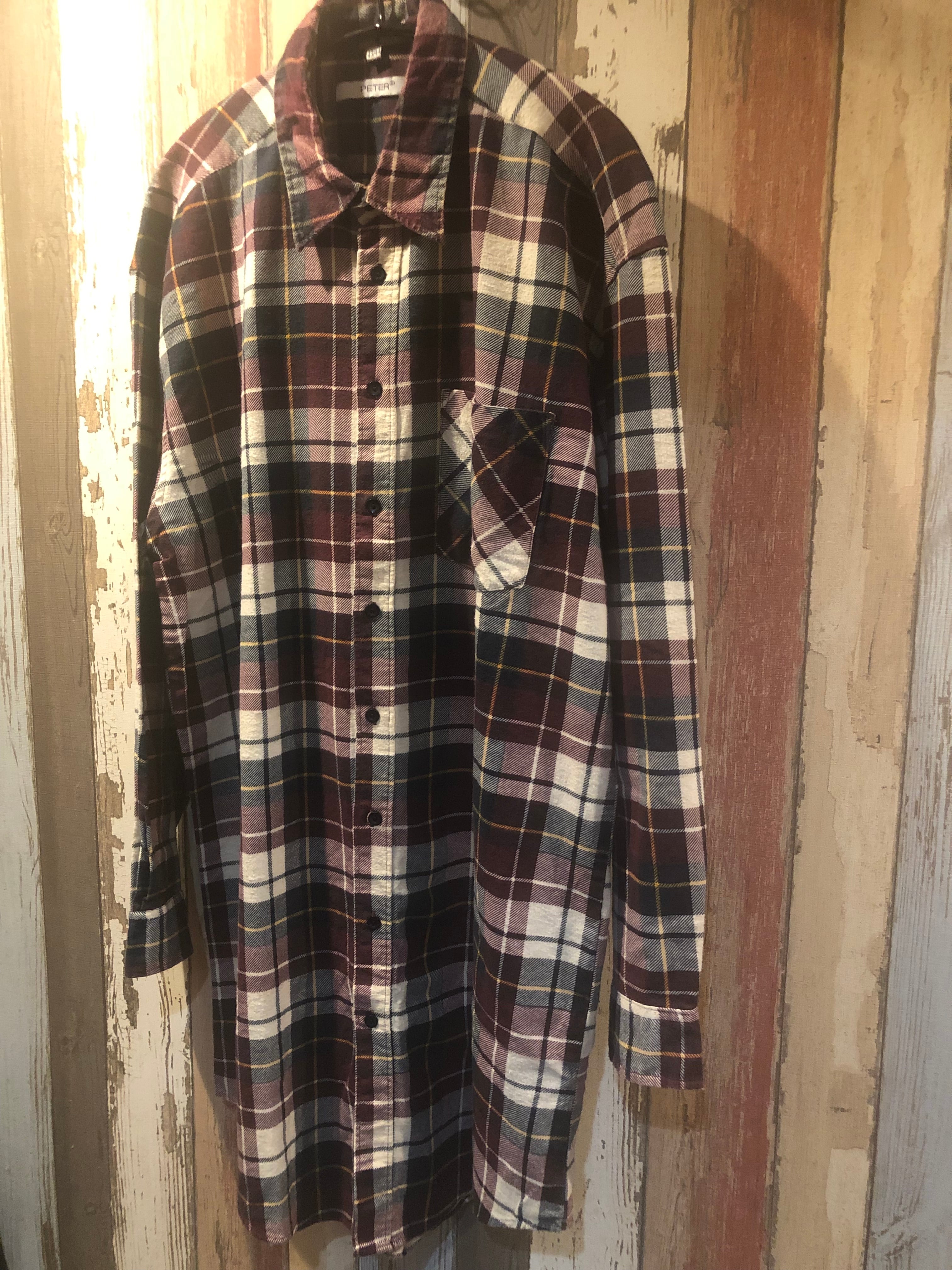 ロングタイプのチェックネルシャツです。リメイクのロングネルが多いですが、こちらはオリジナルのロングネルになります。幅広い層の方に着こなしていただけるかと思います。薄手のネルなので、1枚でも重ねても使えます。特に秋らしい色合いでおススメです。