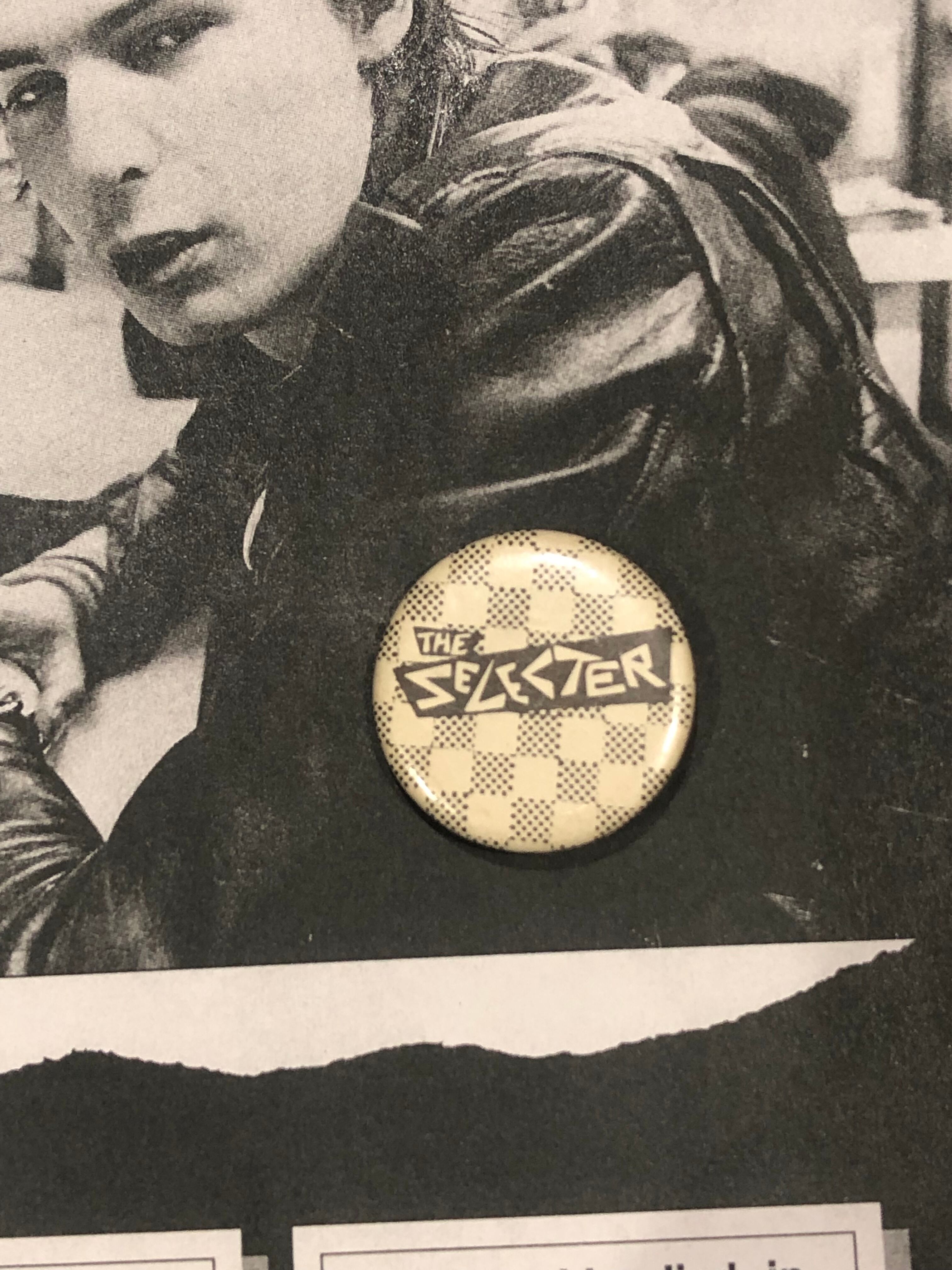 70年代結成のイギリスのスカバンド、ザ・セレクターの缶バッジです。デザインがカッコいいですね。ライダース・MA-1などにいかがですか。おススメです。